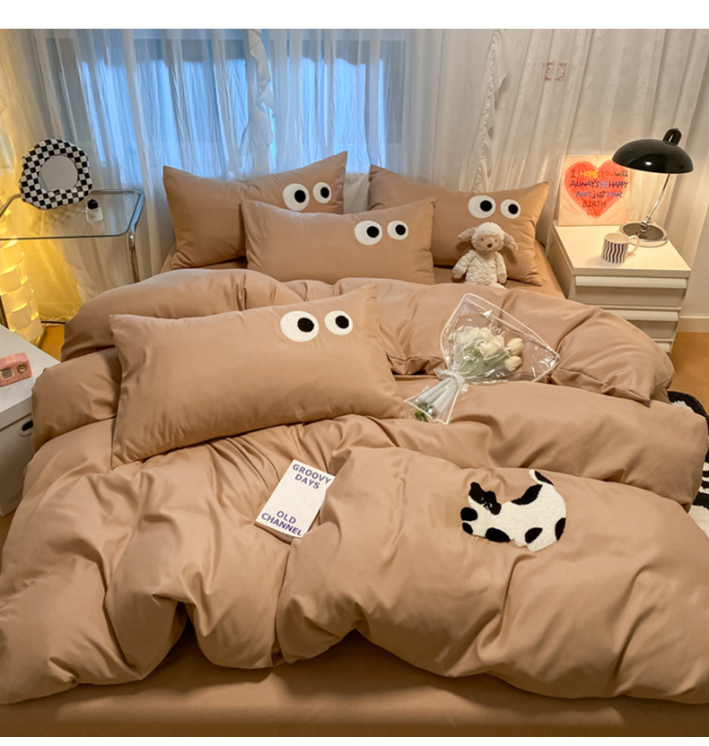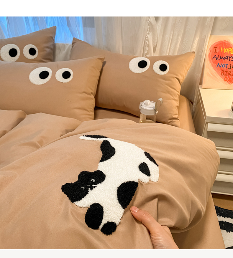 N先生 2024新款美拉德多巴胺毛巾绣四件套-猫咪系列 猫咪-坚果棕