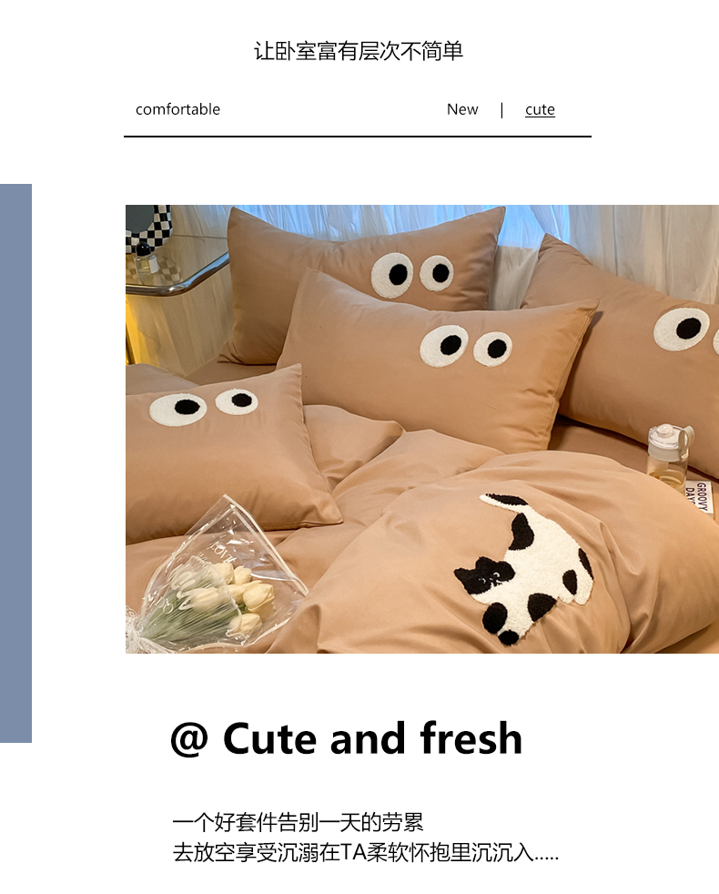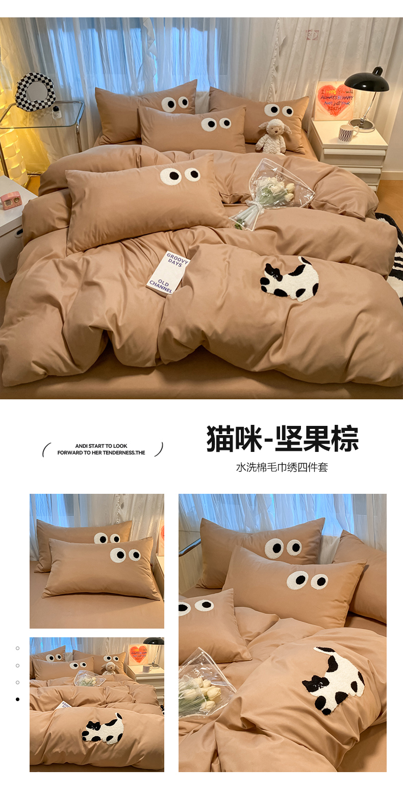 商品名称:N先生 2024新款美拉德多巴胺毛巾绣四件套-猫咪系列 猫咪-坚果棕