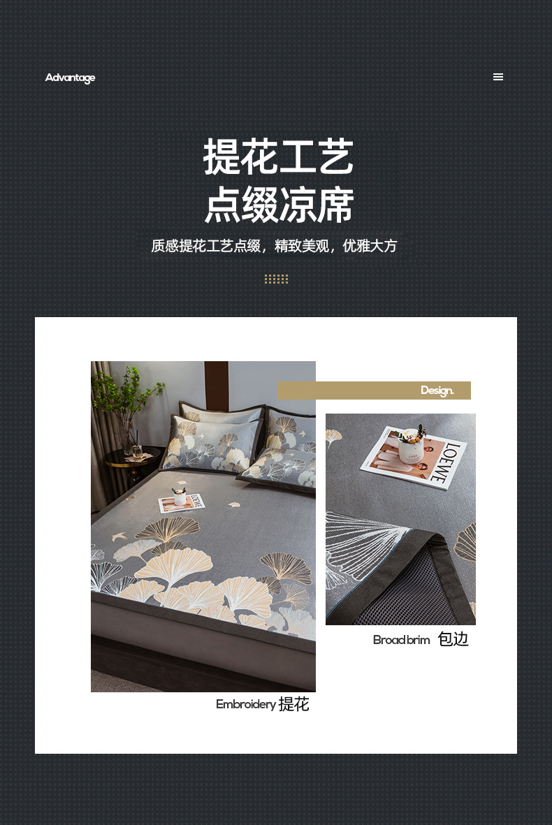 当前位置: 91家纺网 > 商品网购 > 床上用品 > 凉席 > 冰丝席 > 全季家居 2024新款900D高精密三色纬提花冰丝凉席 落叶情深(床席款)