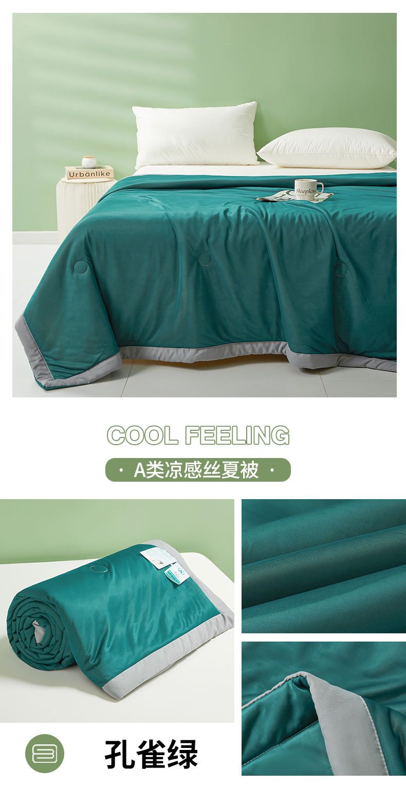 商品名称:湘之帛 2024新款A类纯色凉感丝夏凉被夏被 孔雀绿