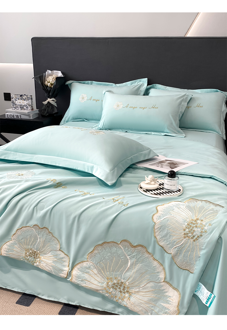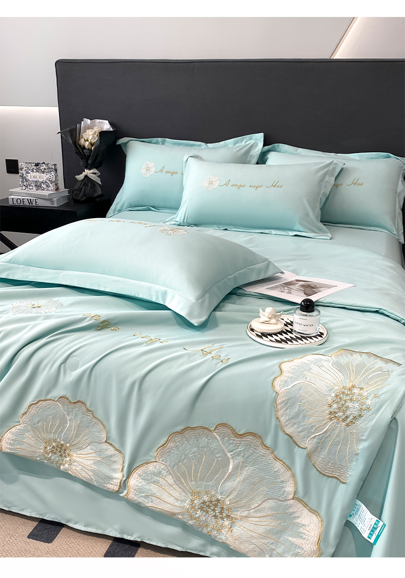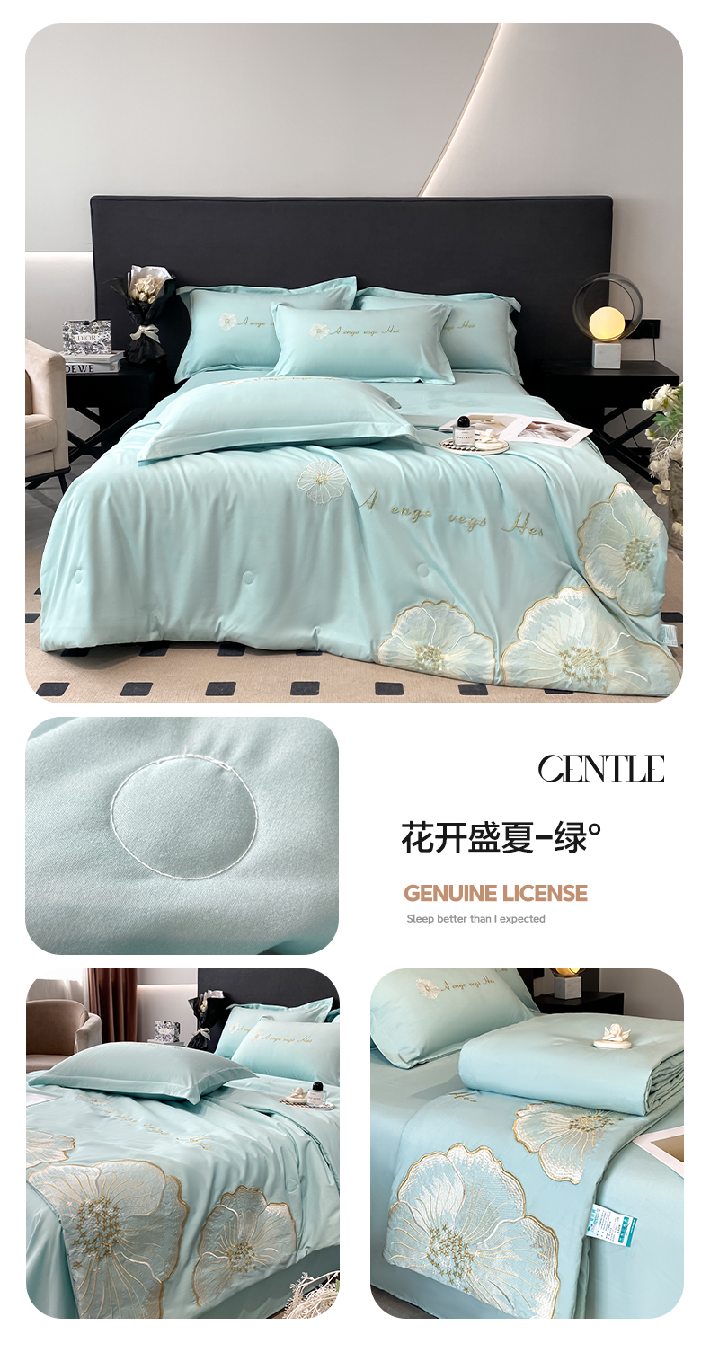 商品名称:你好美丽 2025新款水洗磨毛刺绣夏被四件套-花开盛夏 花开盛夏-绿
