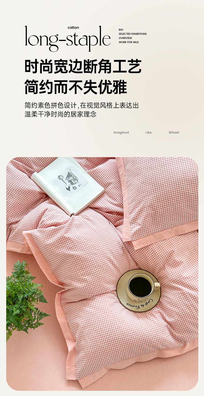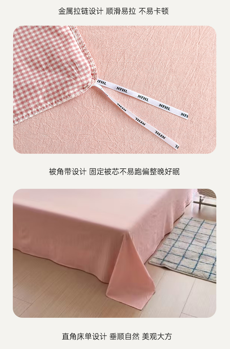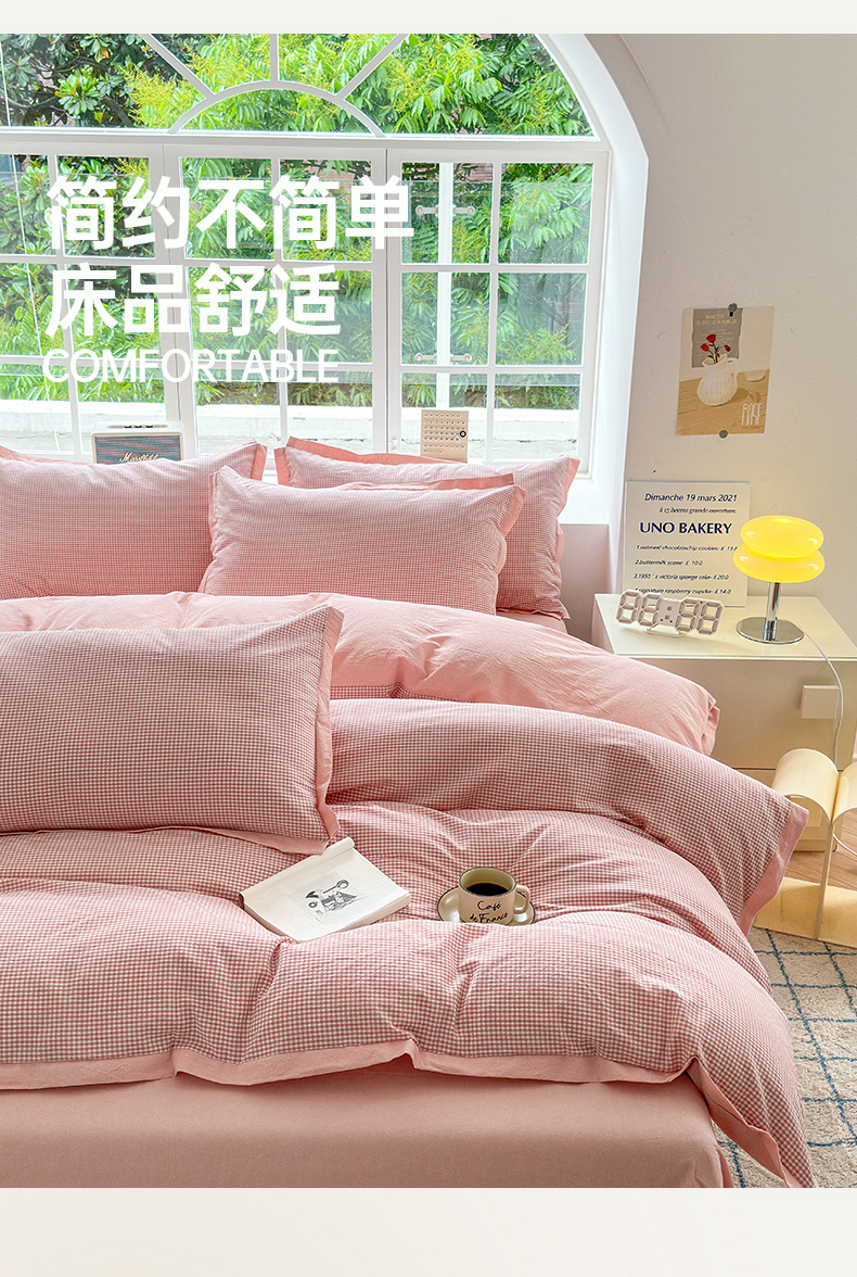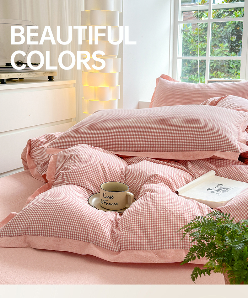 当前位置: 91家纺网 > 商品网购 > 床品套件 > 四件套 > 色织四件套 > 晚依家纺 2025新款全棉色织水洗棉宽边断角四件套 爱的邂逅-粉
