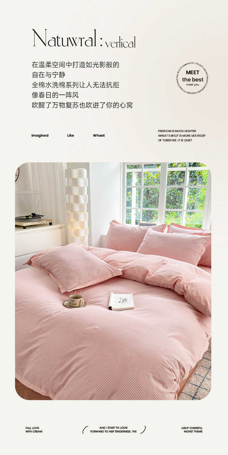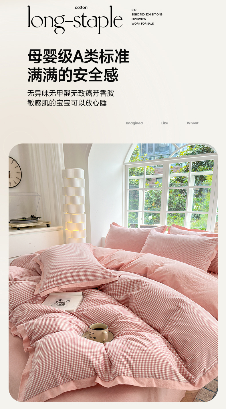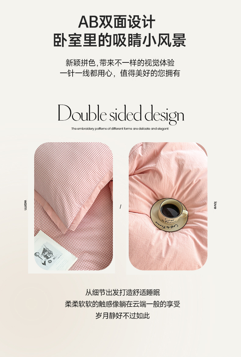 当前位置: 91家纺网 > 商品网购 > 床品套件 > 四件套 > 色织四件套 > 晚依家纺 2025新款全棉色织水洗棉宽边断角四件套 爱的邂逅-粉