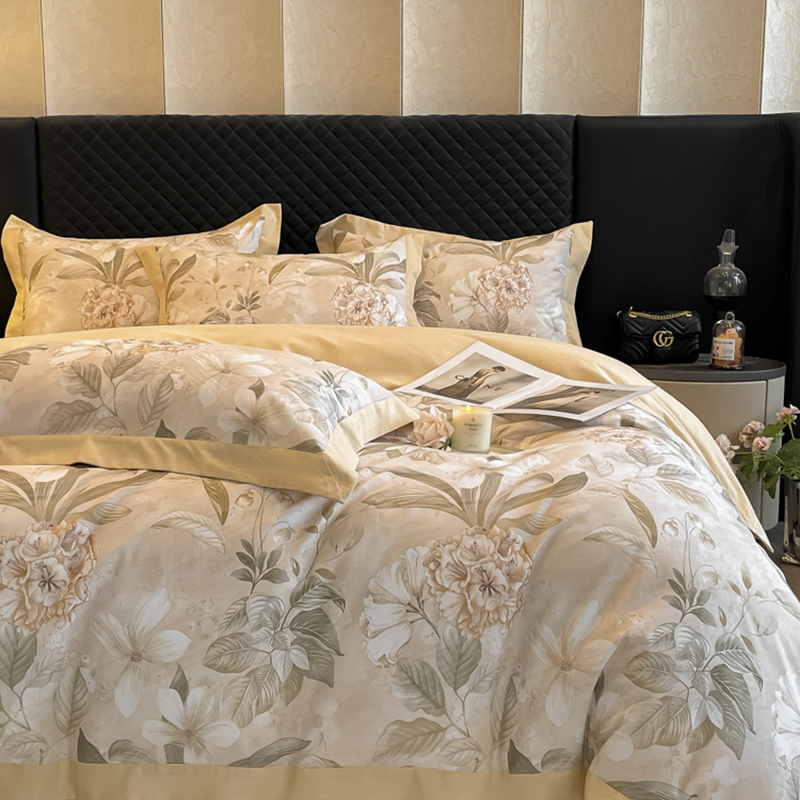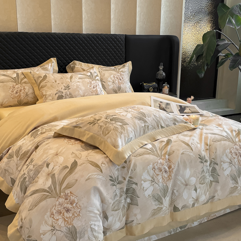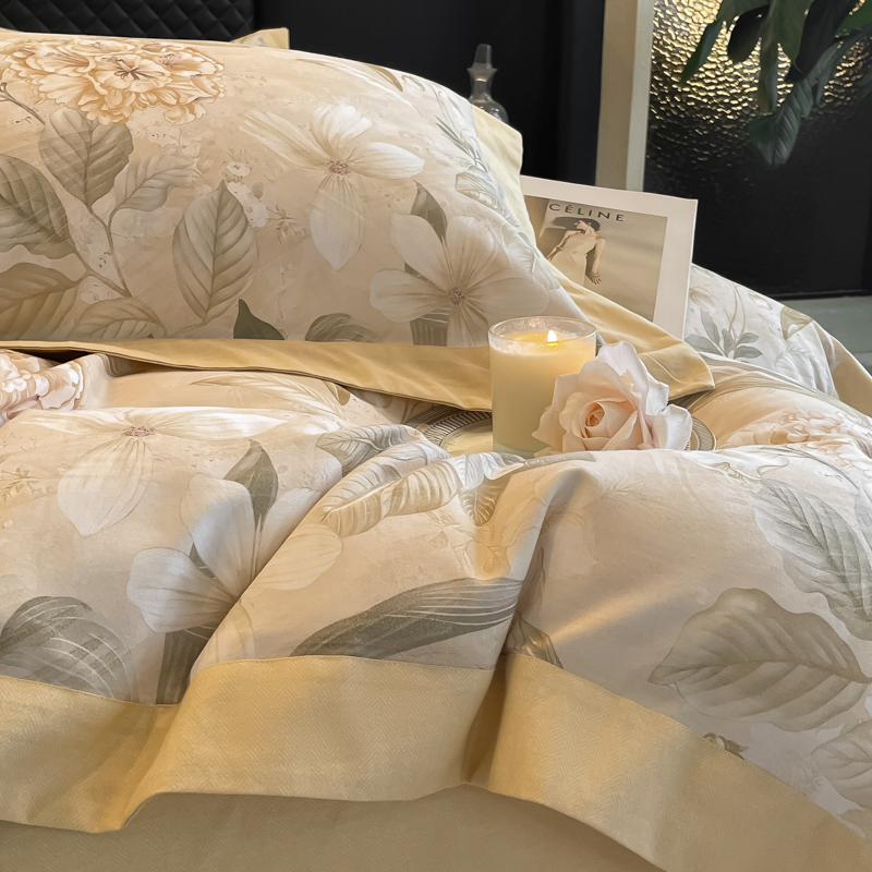 栩裕纺织 2025新款雪芙棉超柔天丝棉磨毛四件套 素瑾-黄