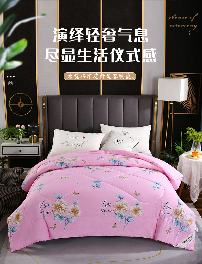 • 91家纺网 家纺一手货源 找家纺 梦莎被业 2025新款水洗棉印花舒适春秋被四季被夏被冬被被子被芯 时尚生活