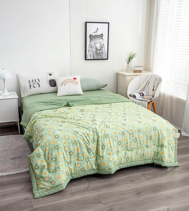被子 > 夏被 > 梦莎被业 2025新款A类水洗棉麻夏凉被夏被四件套棉麻双层纱大豆夏被空调被直播热款-主图一 夏日风情