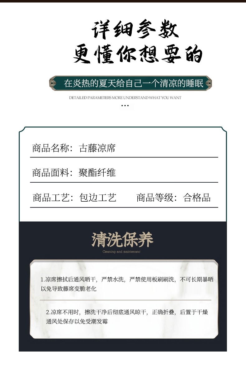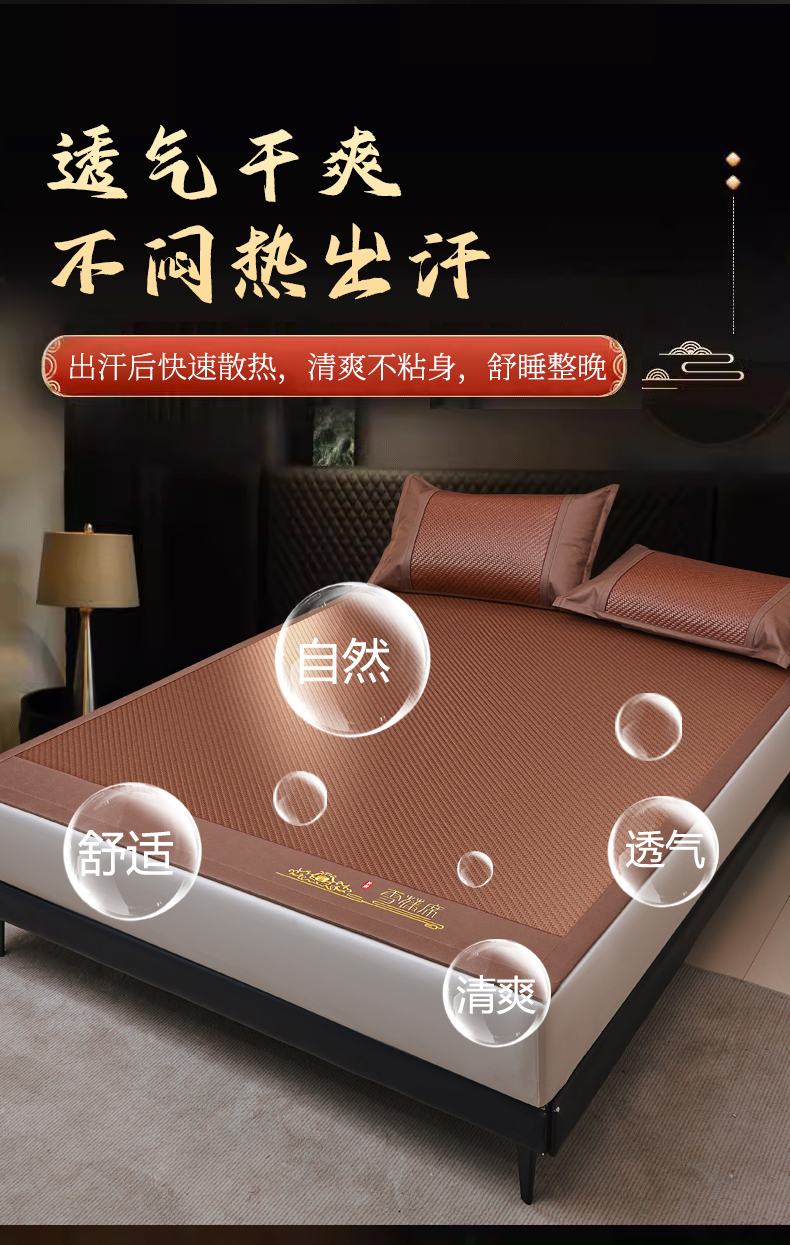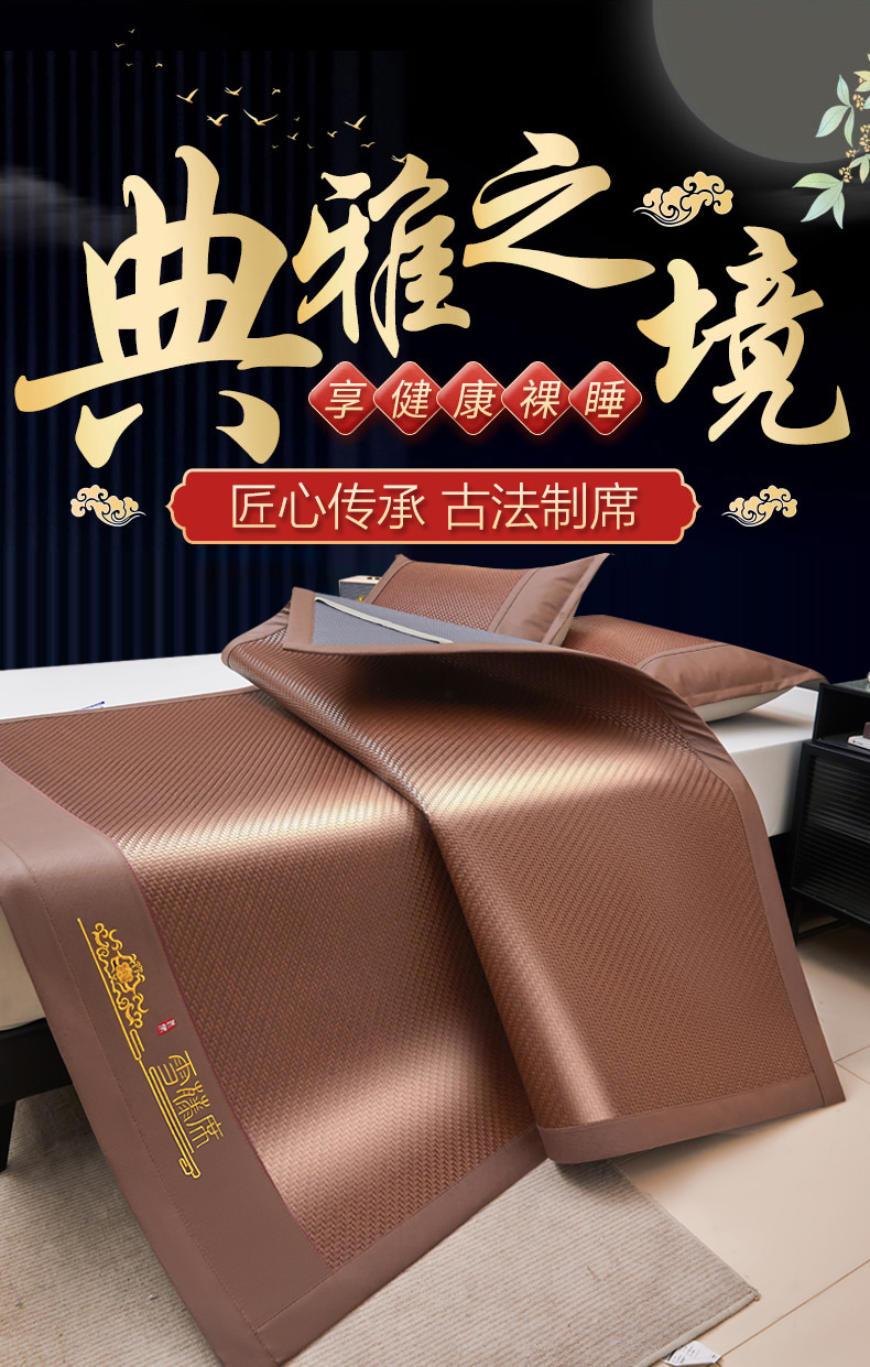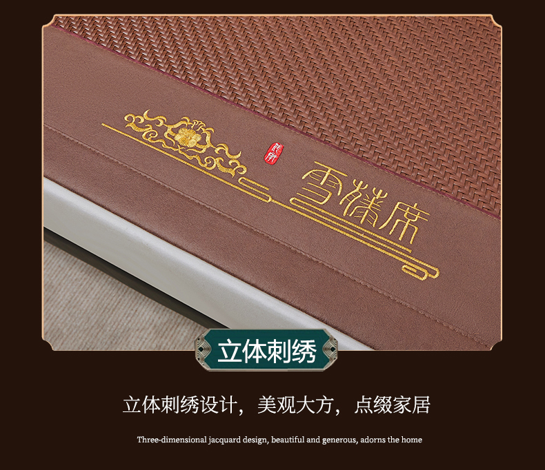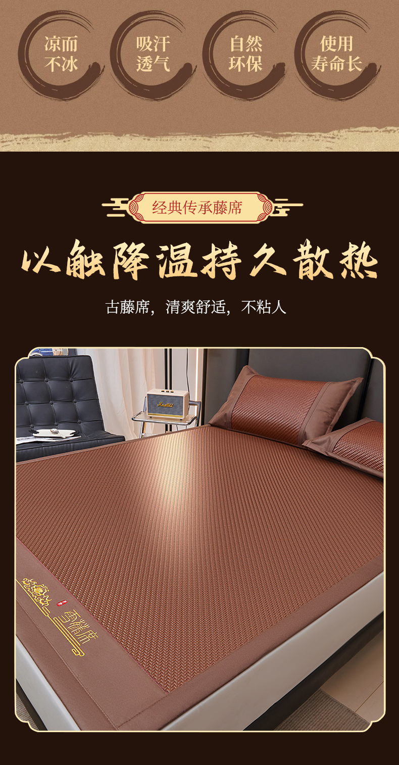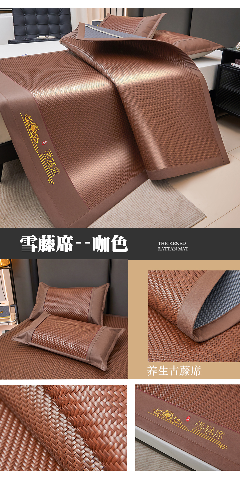 商品名称:莱轩席业 2025新款立体刺绣雪藤席古藤凉席 咖色