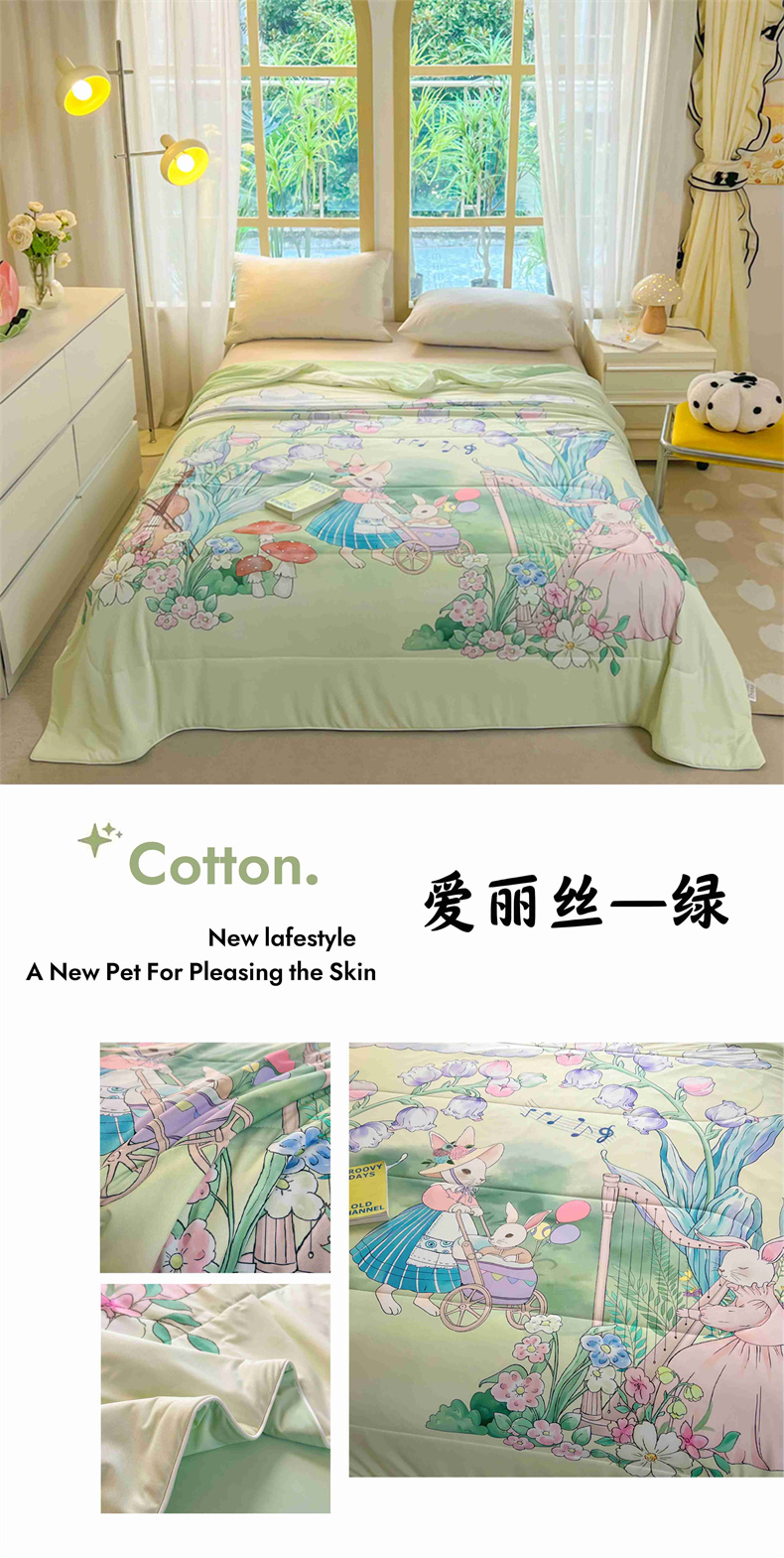 (总)大世界被王 2025年新款大版印花卡通凉感丝夏被,爱丽丝-绿,海底萌宠-兰,蘑菇兔-兰,蘑菇兔-绿,音乐会-粉