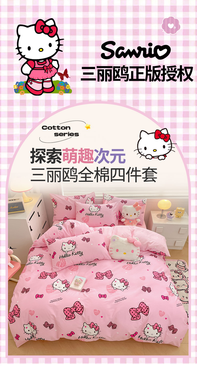 当前位置: 91家纺网 > 商品网购 > 床品套件 > 四件套 > 全棉普通四件套 > 暮思家居 2025新款正版授权三丽鸥小版全棉四件套系列(第二批) 开心凯蒂