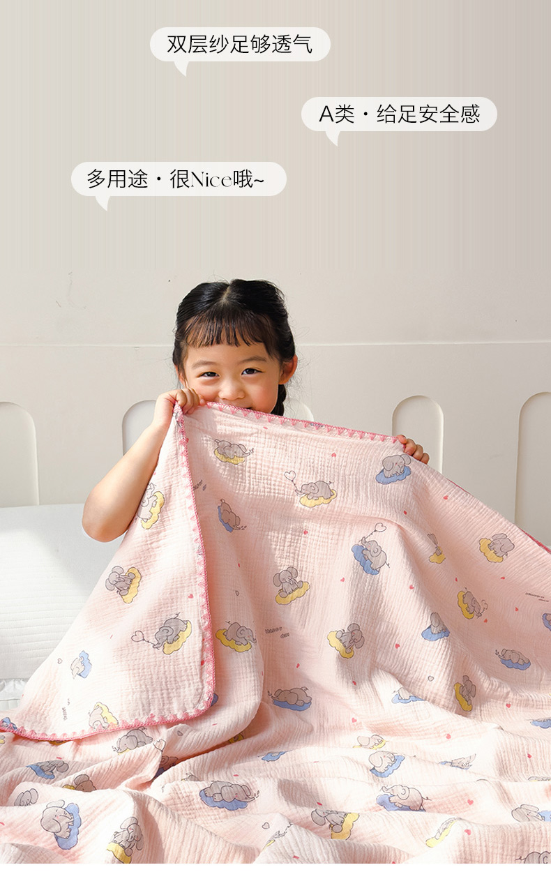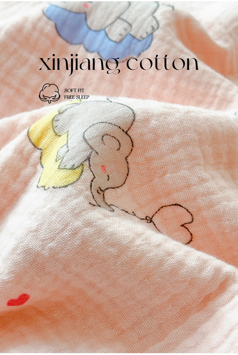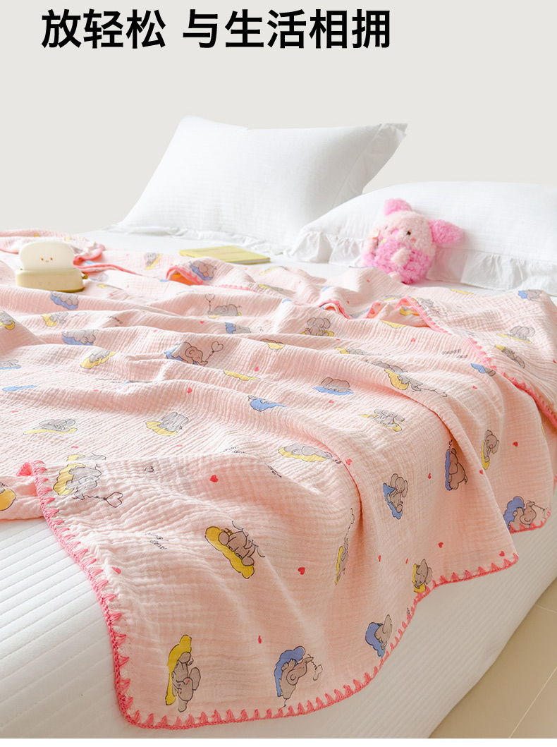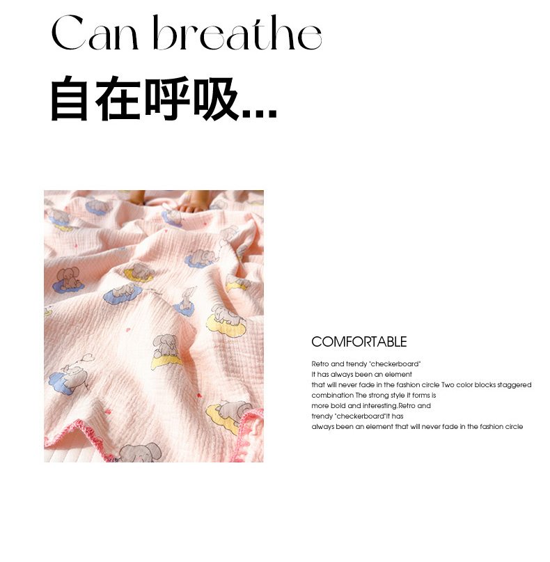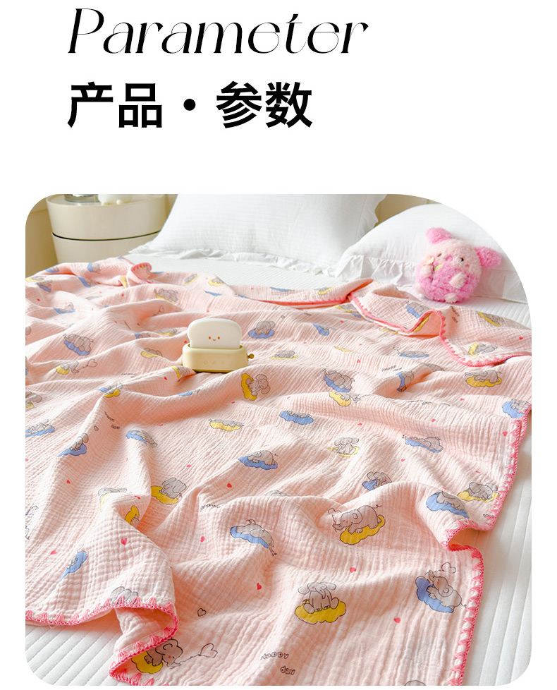 商品名称:兄弟坊 2025全棉抗菌皱皱双层纱夏被午睡毯盖毯空调毯夏凉被沙发毯 皱皱纱-晚安象