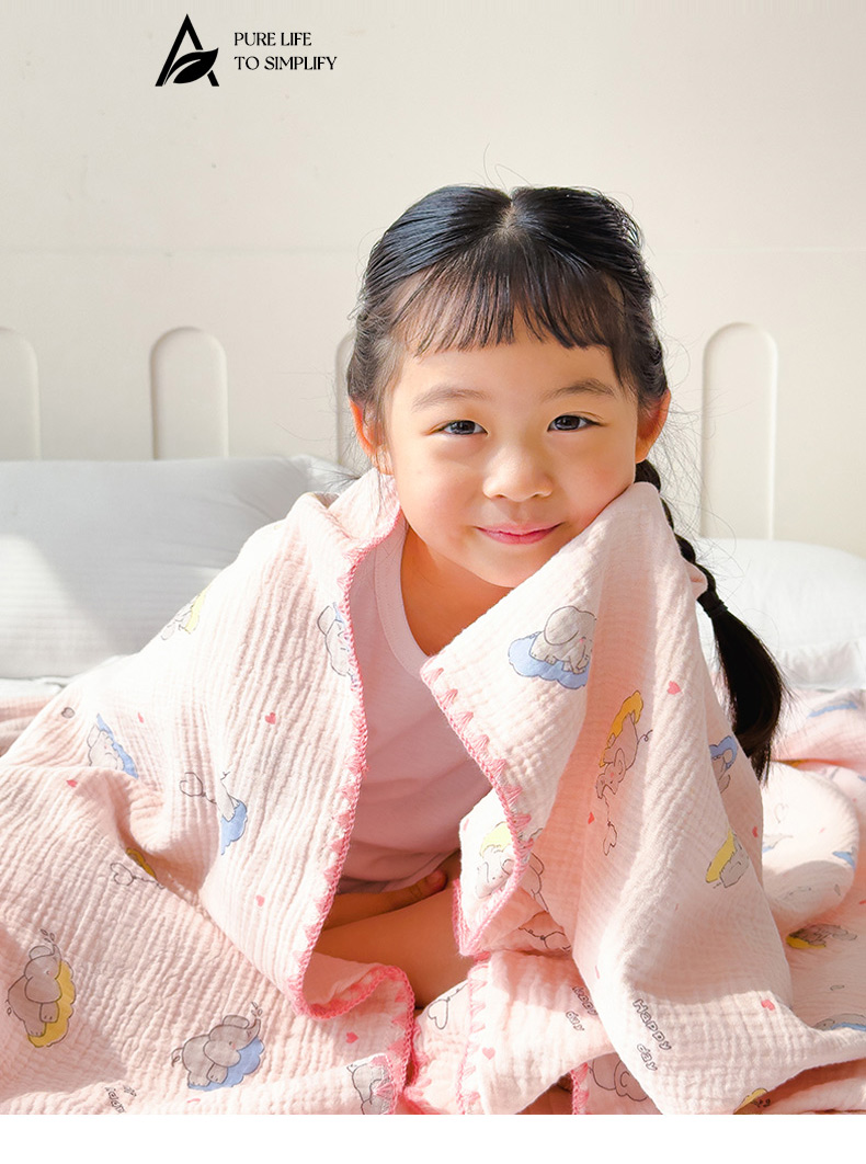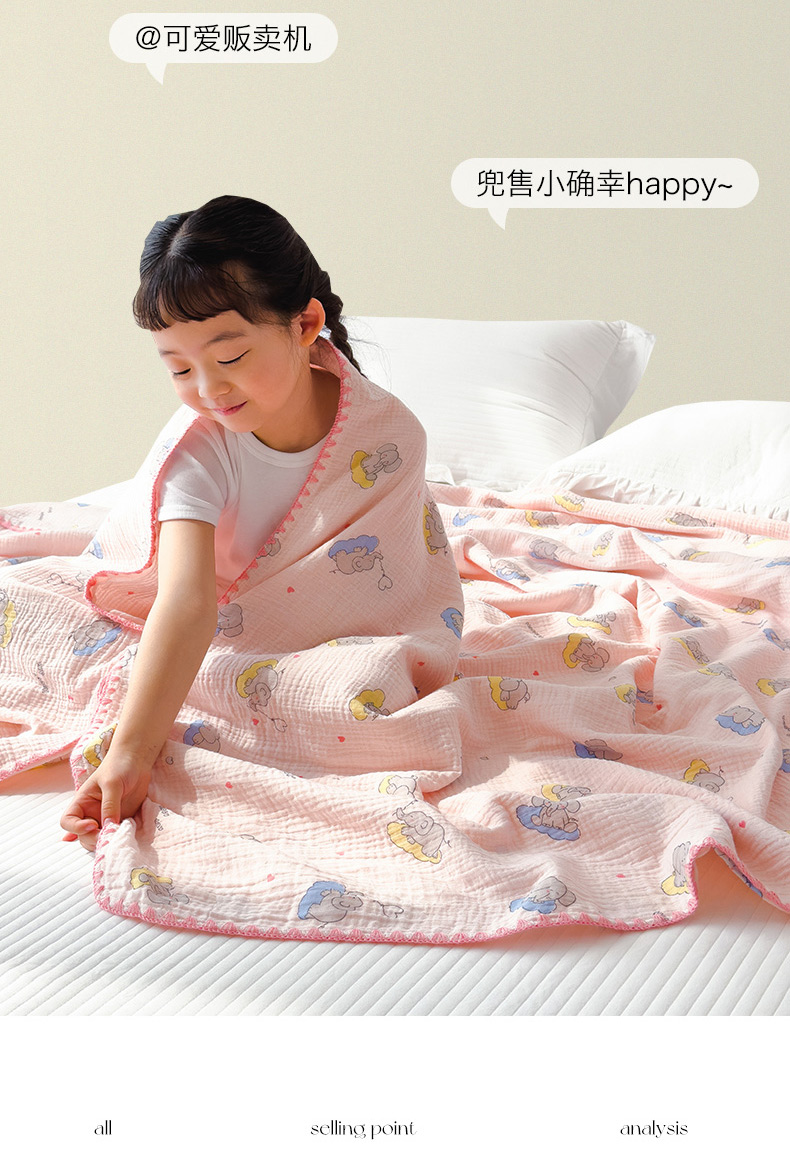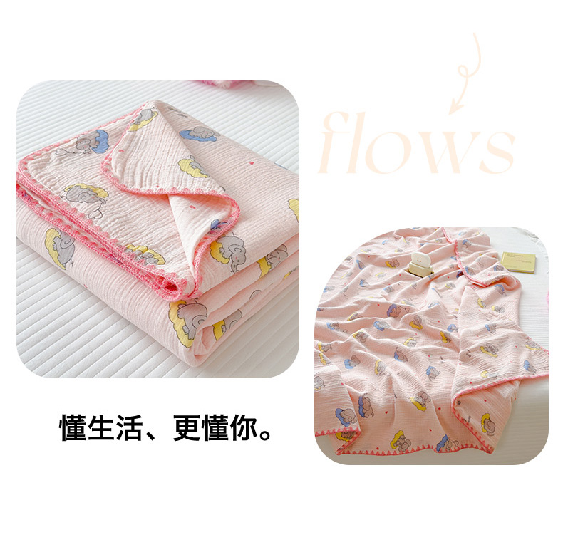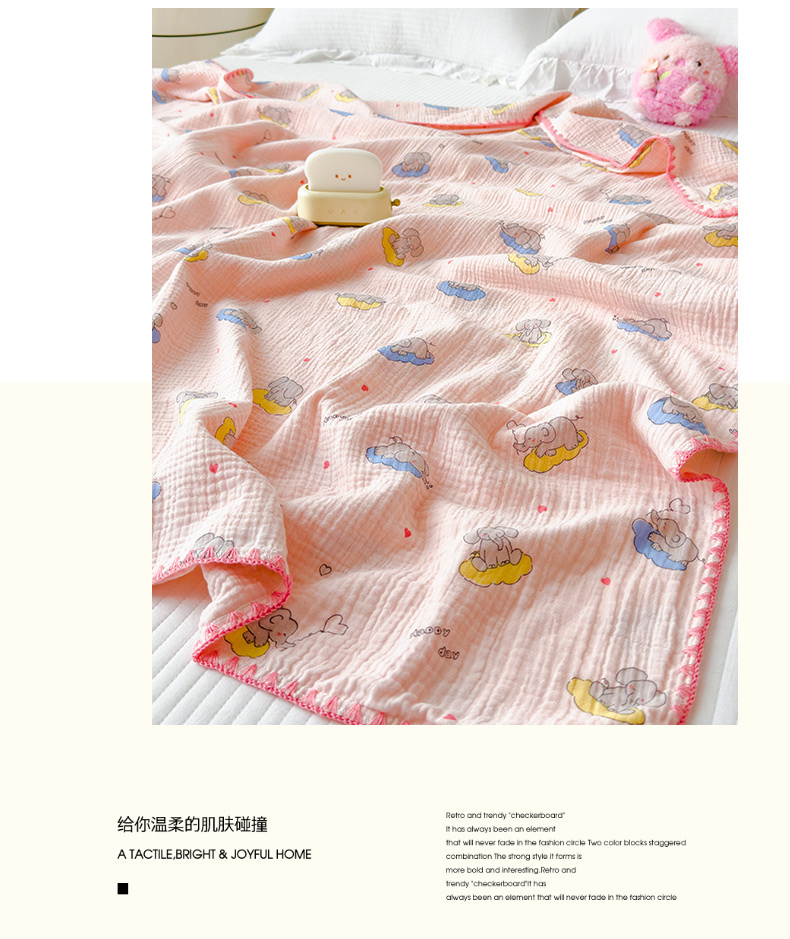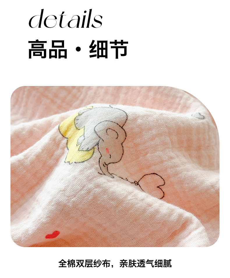 商品名称:兄弟坊 2025全棉抗菌皱皱双层纱夏被午睡毯盖毯空调毯夏凉被沙发毯 皱皱纱-晚安象