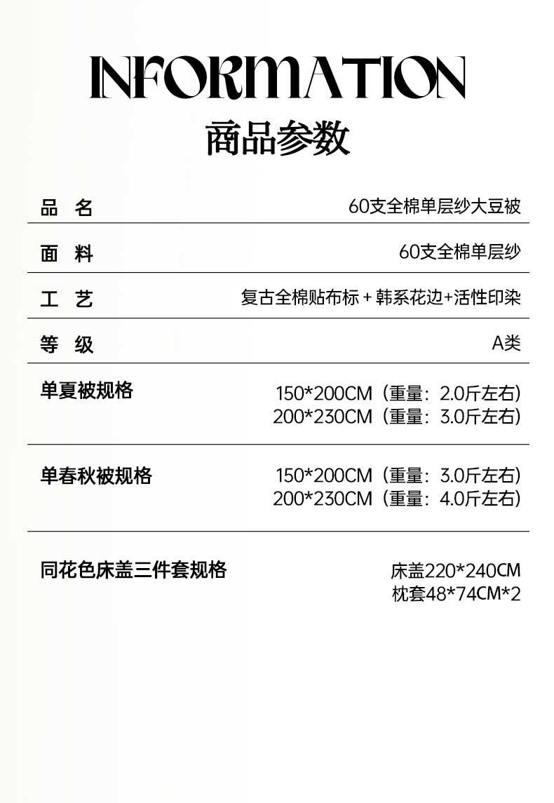 适用季节: 空调被/夏凉被