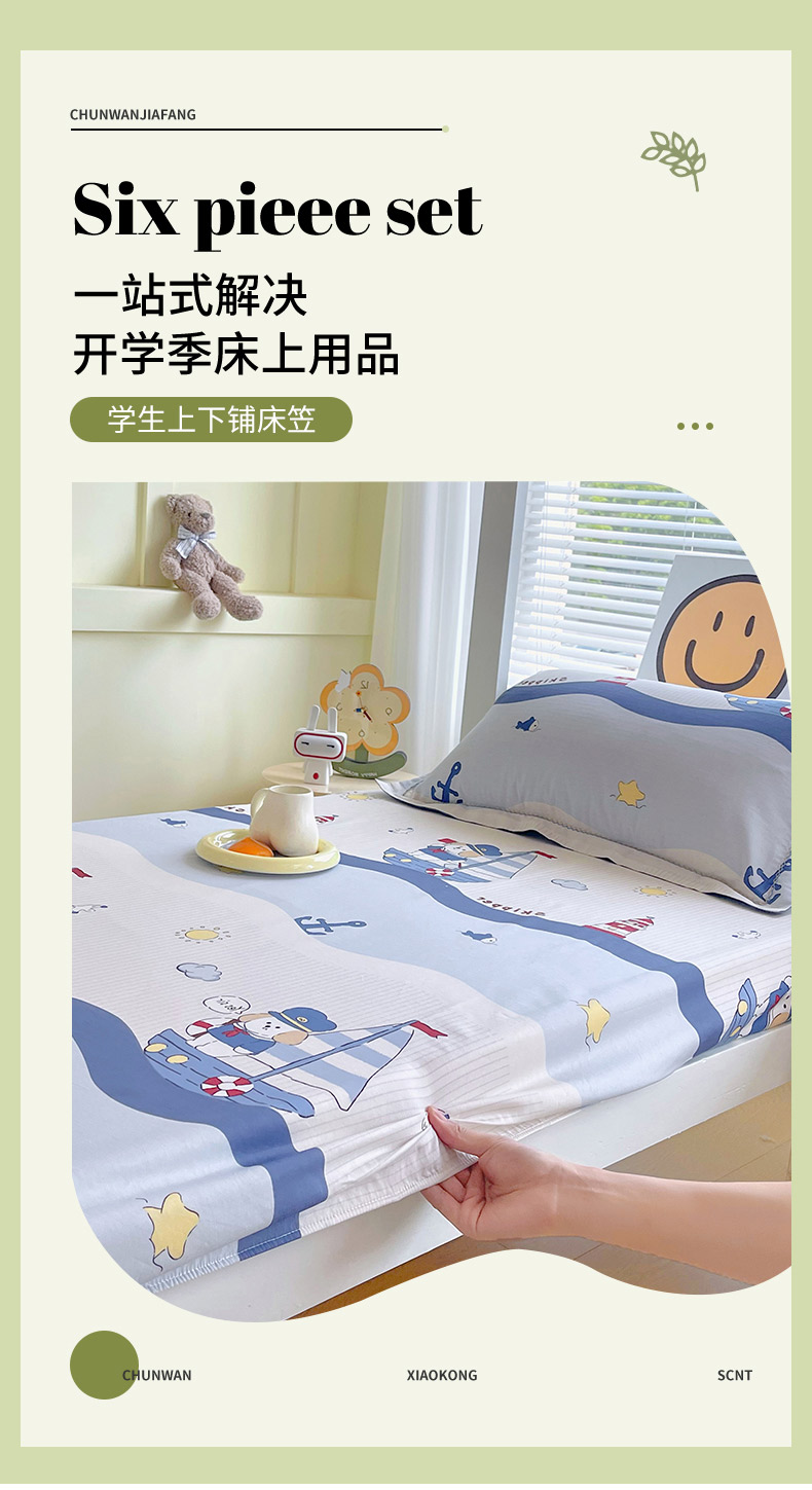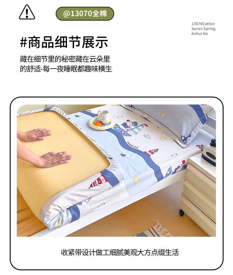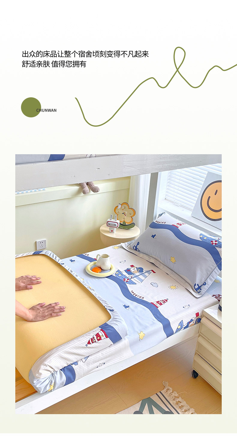 • 91家纺网 家纺一手货源 找家纺 春皖家纺 2025新款学生季全棉纯棉13070印花单床笠 床笠单件 海韵悠行