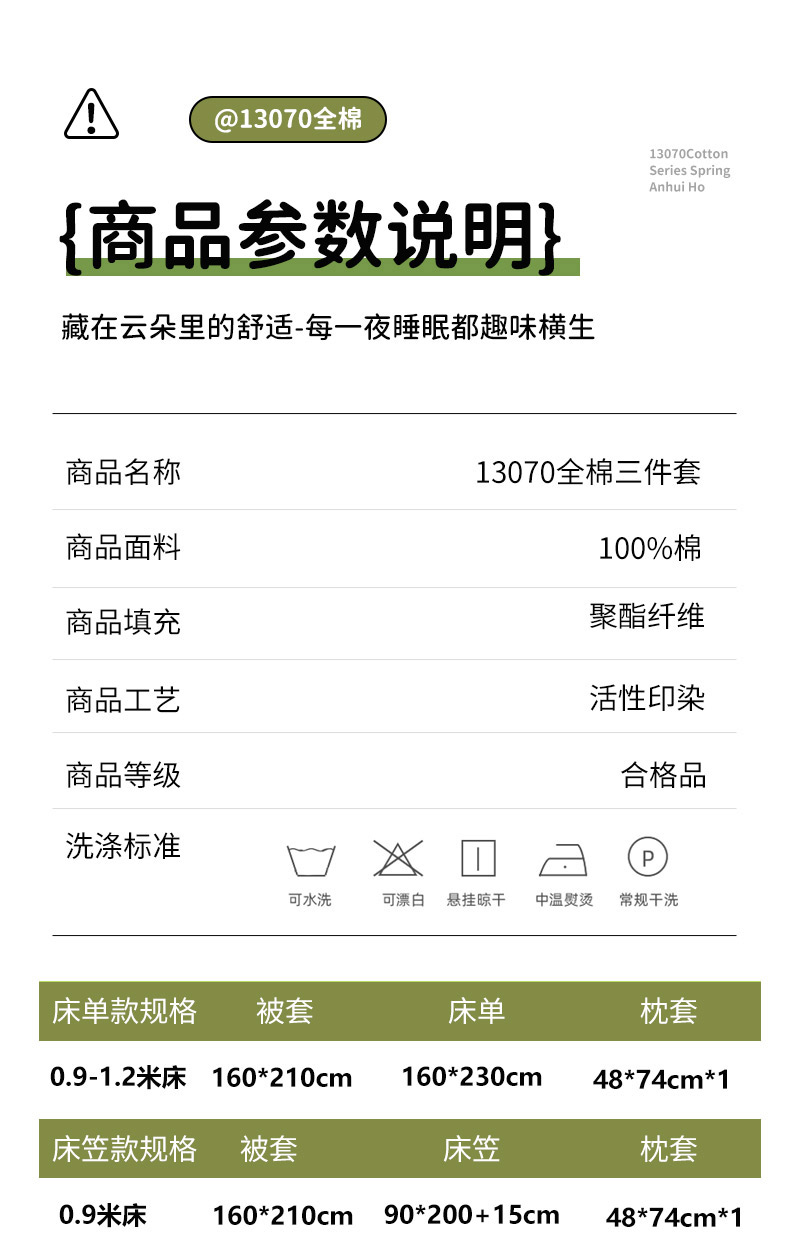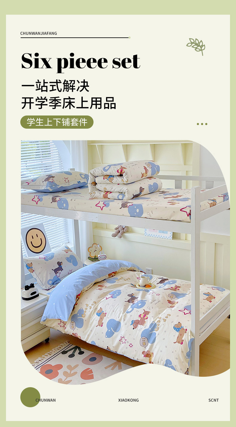 商品名称:(总)春皖家纺 2025新款学生季全棉纯棉13070印花宿舍三件套上下铺三件套