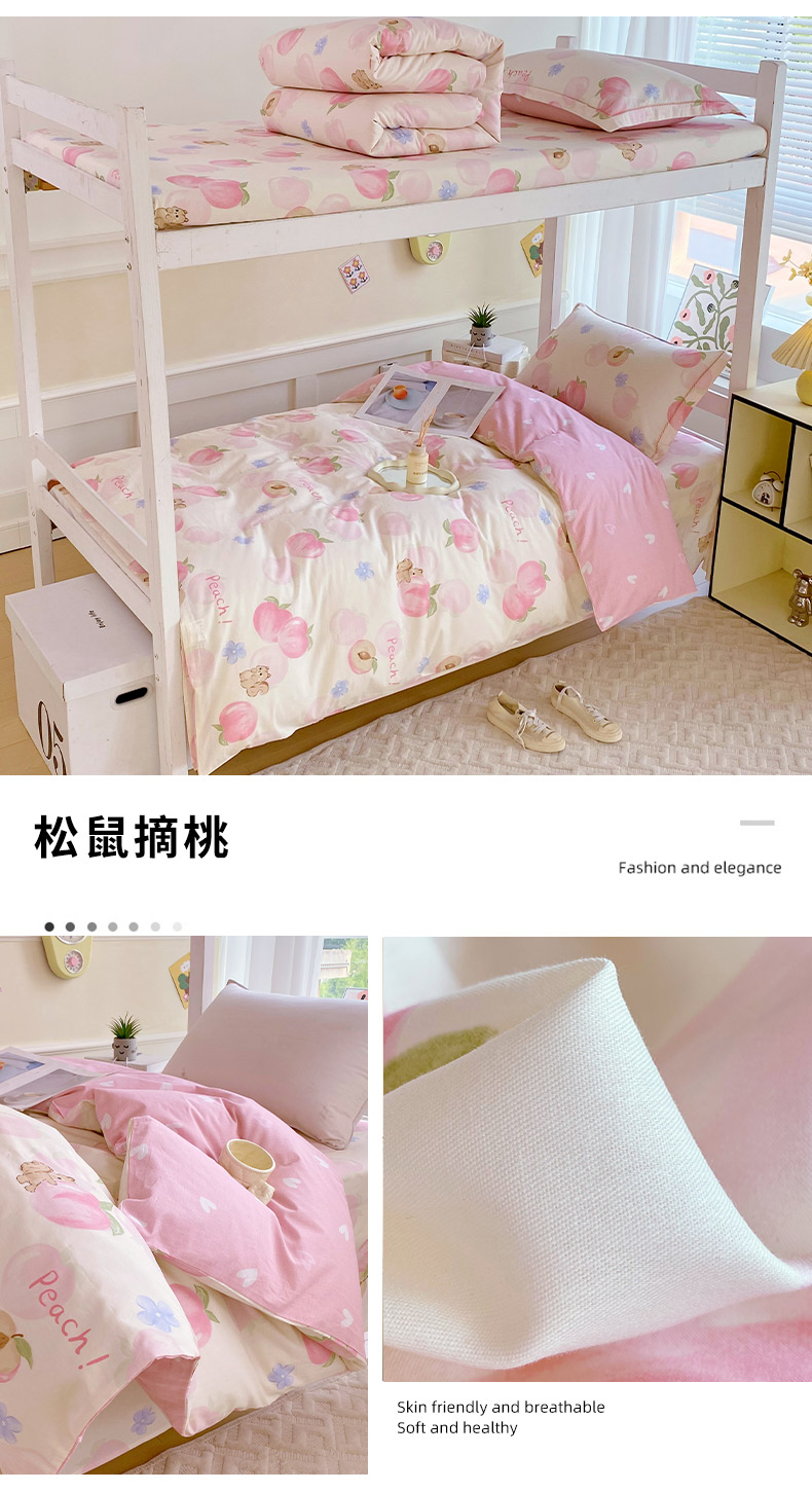 (总)春皖家纺 2025新款学生季全棉纯棉13070印花宿舍三件套上下铺三件套