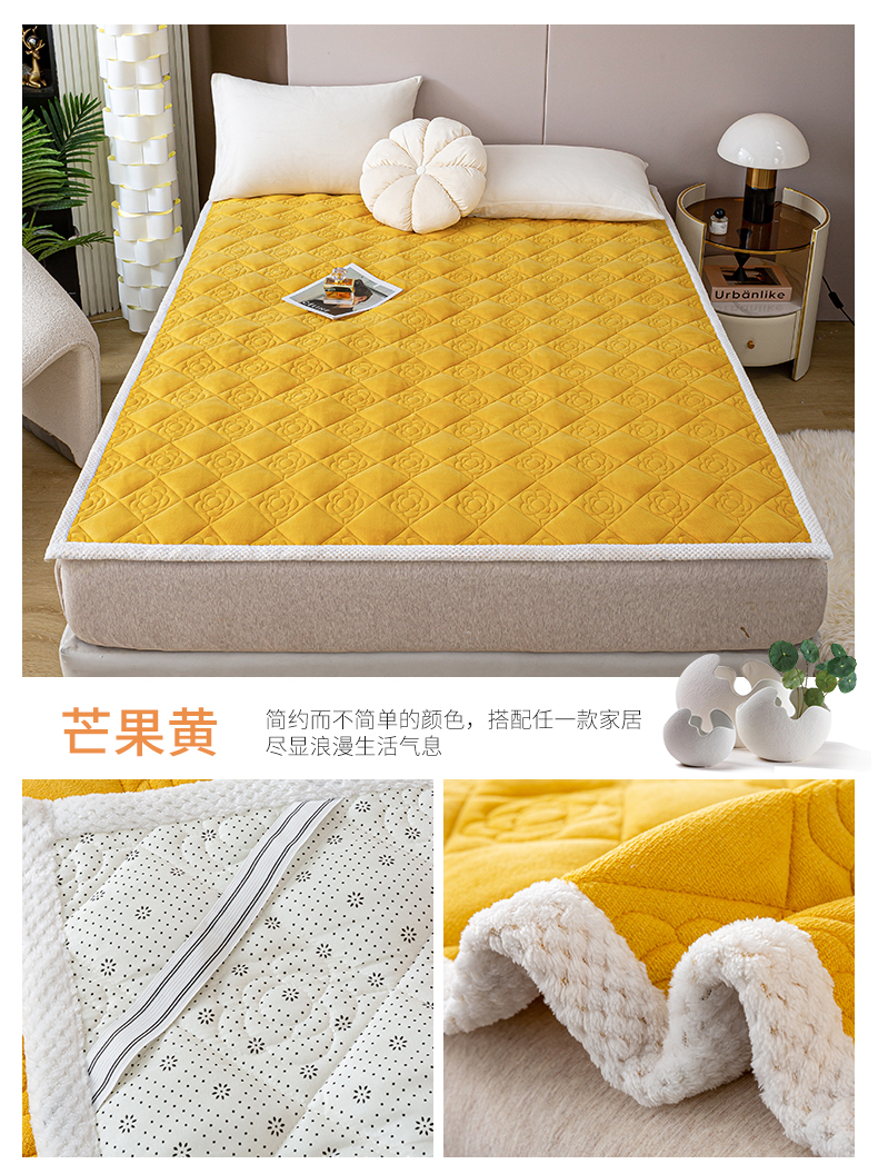 商品名称:正邦家纺 2025新款学生宿舍上下铺牛奶绒刺绣玫瑰花夹棉床垫床护垫床褥子 芒果黄