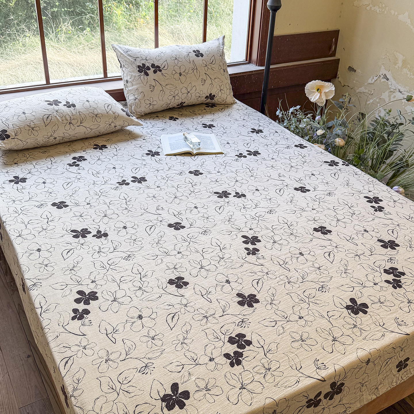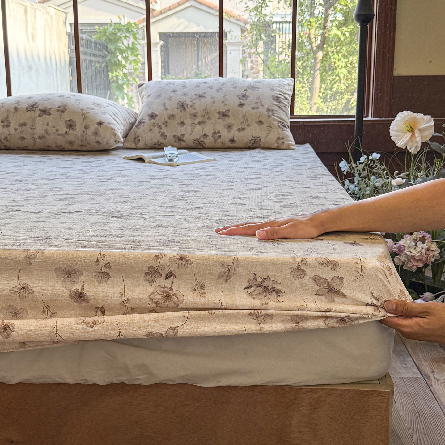 商品名称:仟网汇 2025新款高克重水洗亚麻复古原麻床笠 墨色花语