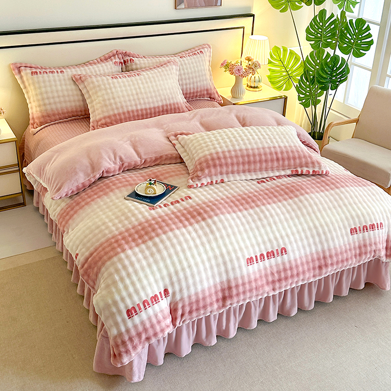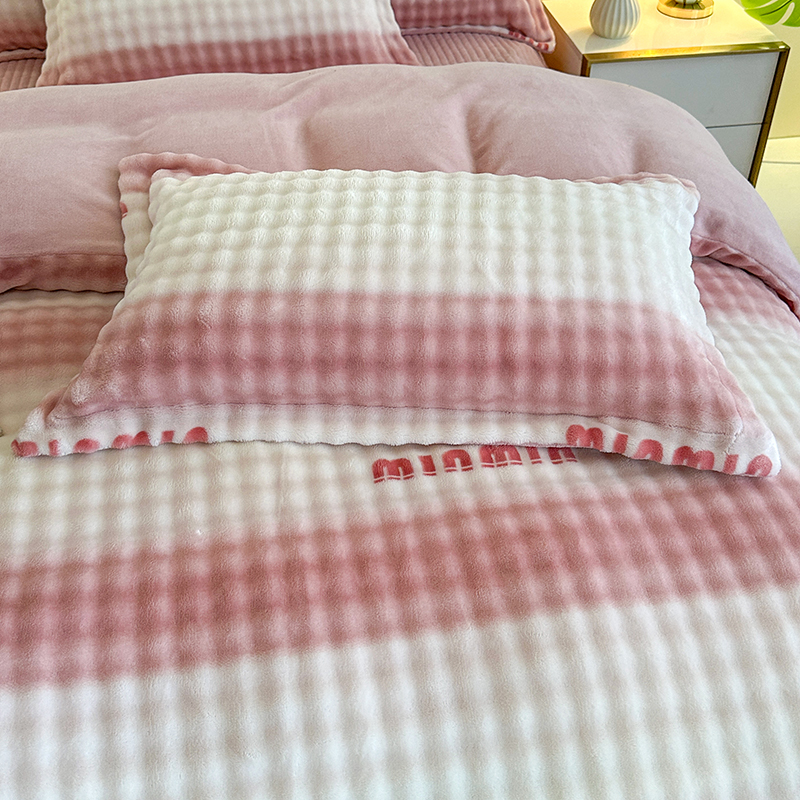 商品名称:富缦庭 2025新款泡泡牛奶绒床盖款四件套 条纹字母-粉