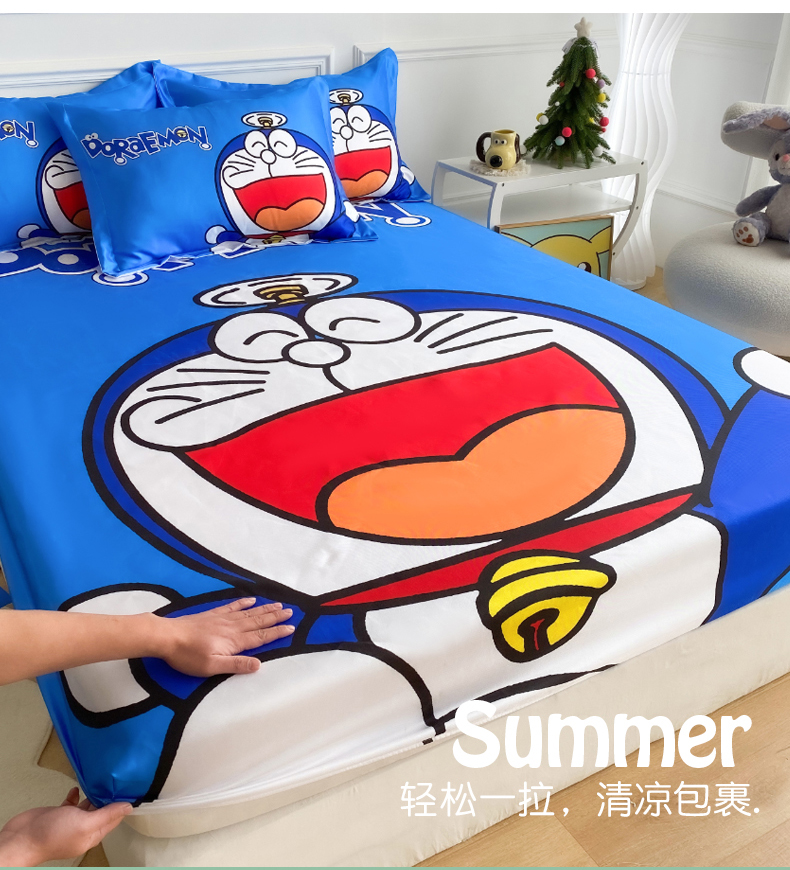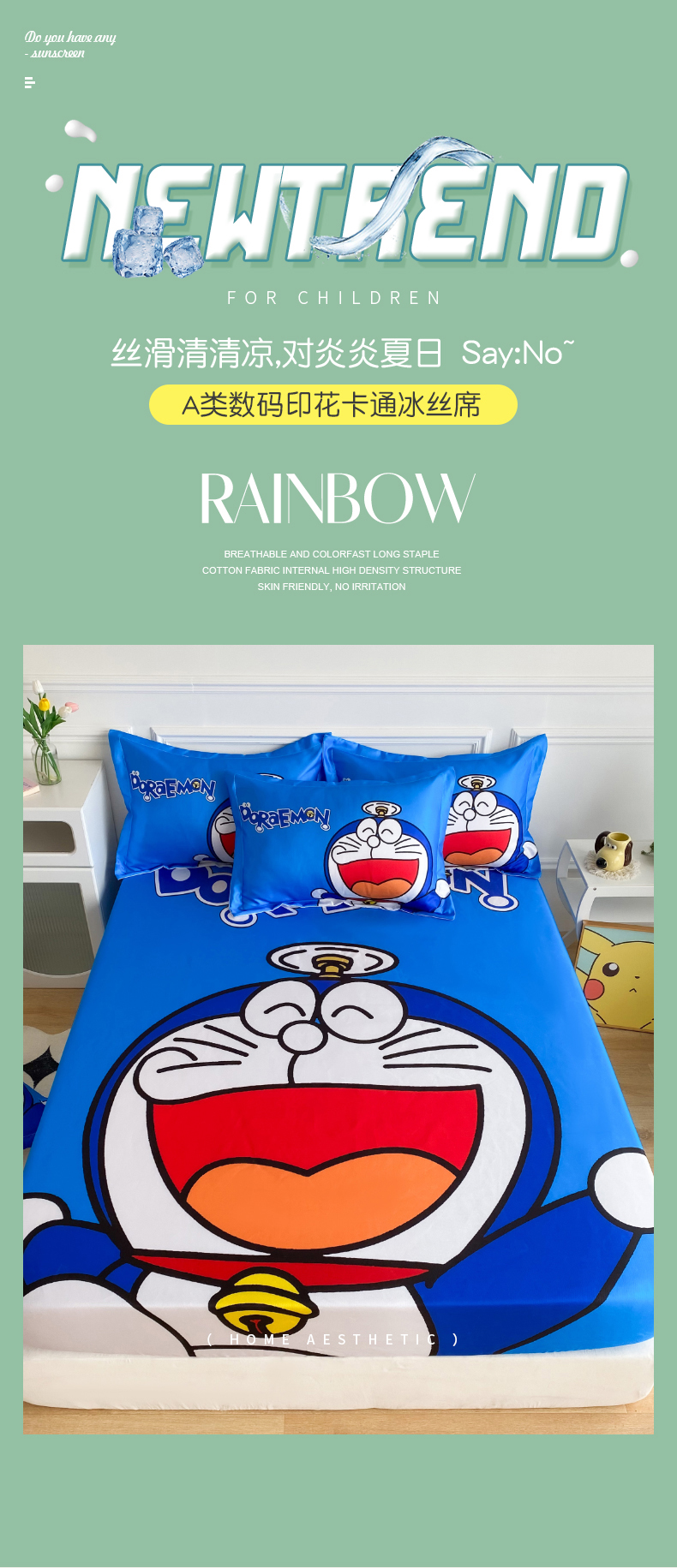 一电 2025新款跨境电商外贸夏季卡通冰丝凉席床笠可水洗学生宿舍单人空调席子 叮当快跑