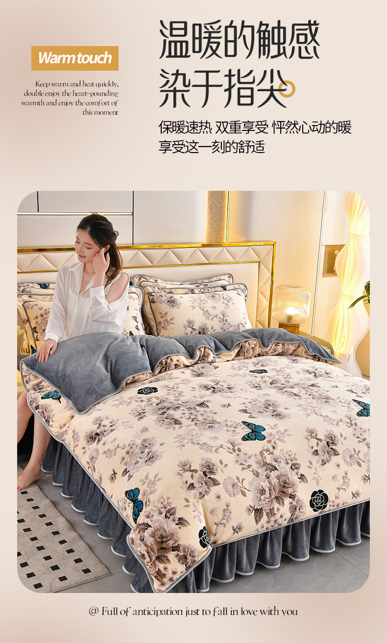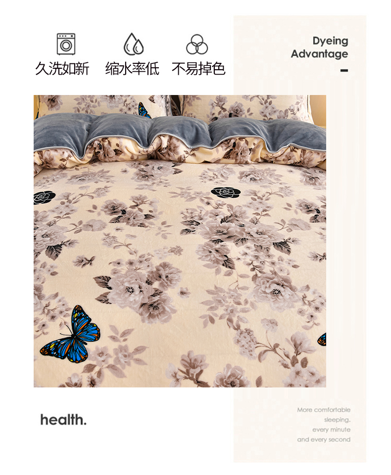 缘莉娜家纺 2025高克重8斤牛奶绒四件套金貂绒法莱绒加厚保暖直播电商爆款 蝶恋花