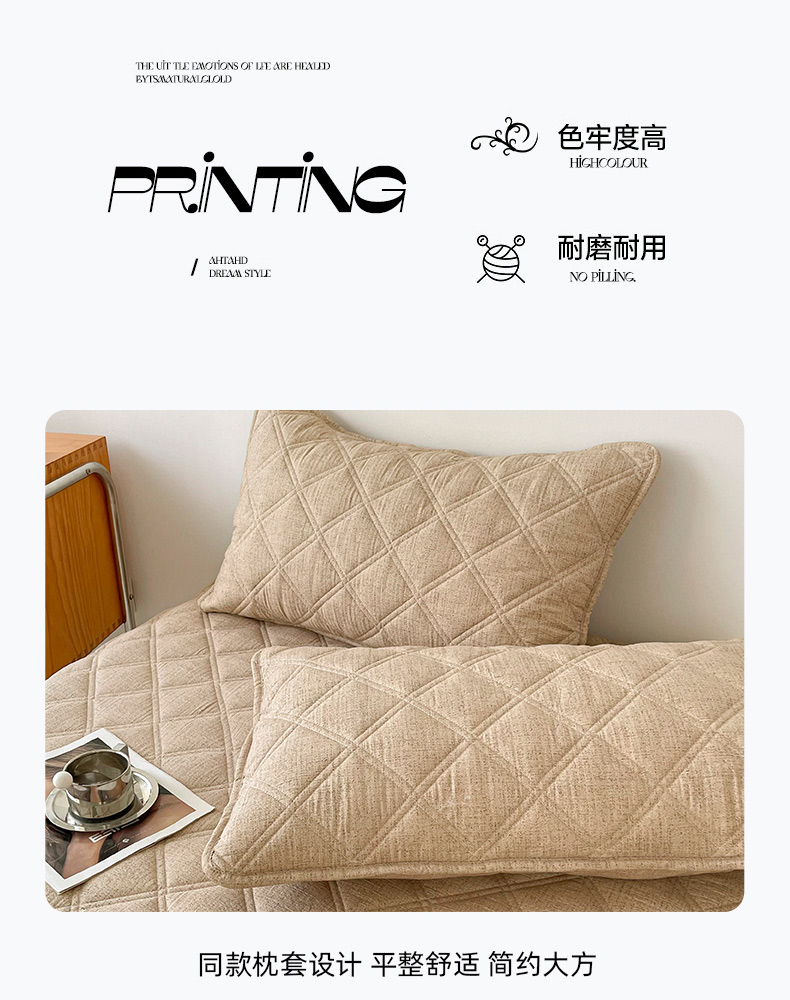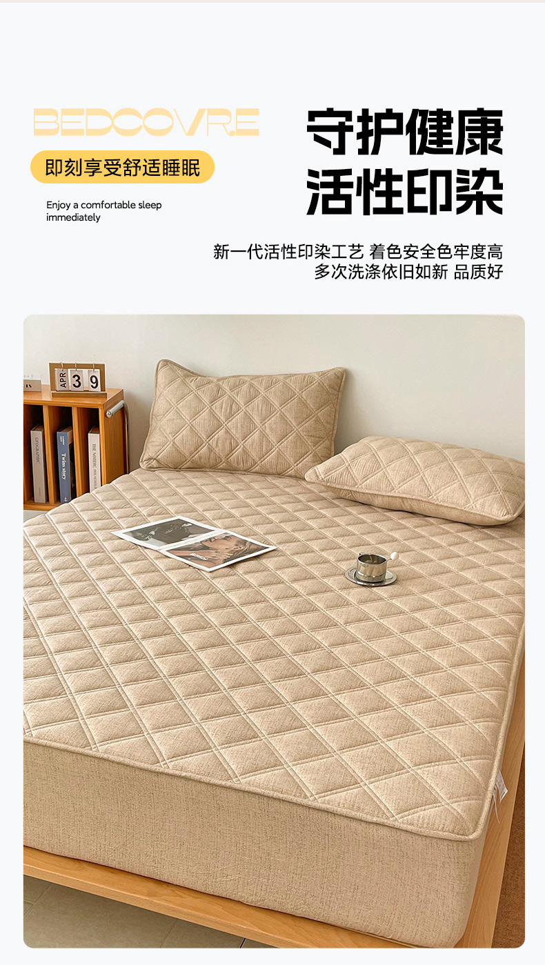 (总)豪选家纺 2025新款仿亚麻夹棉棉花床笠,卡其驼,木槿紫,暮云灰,青草绿,水墨蓝,丝雾棕
