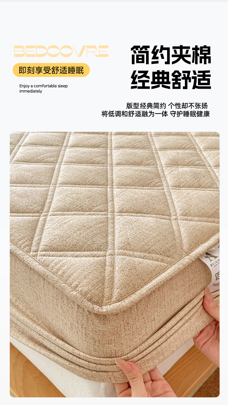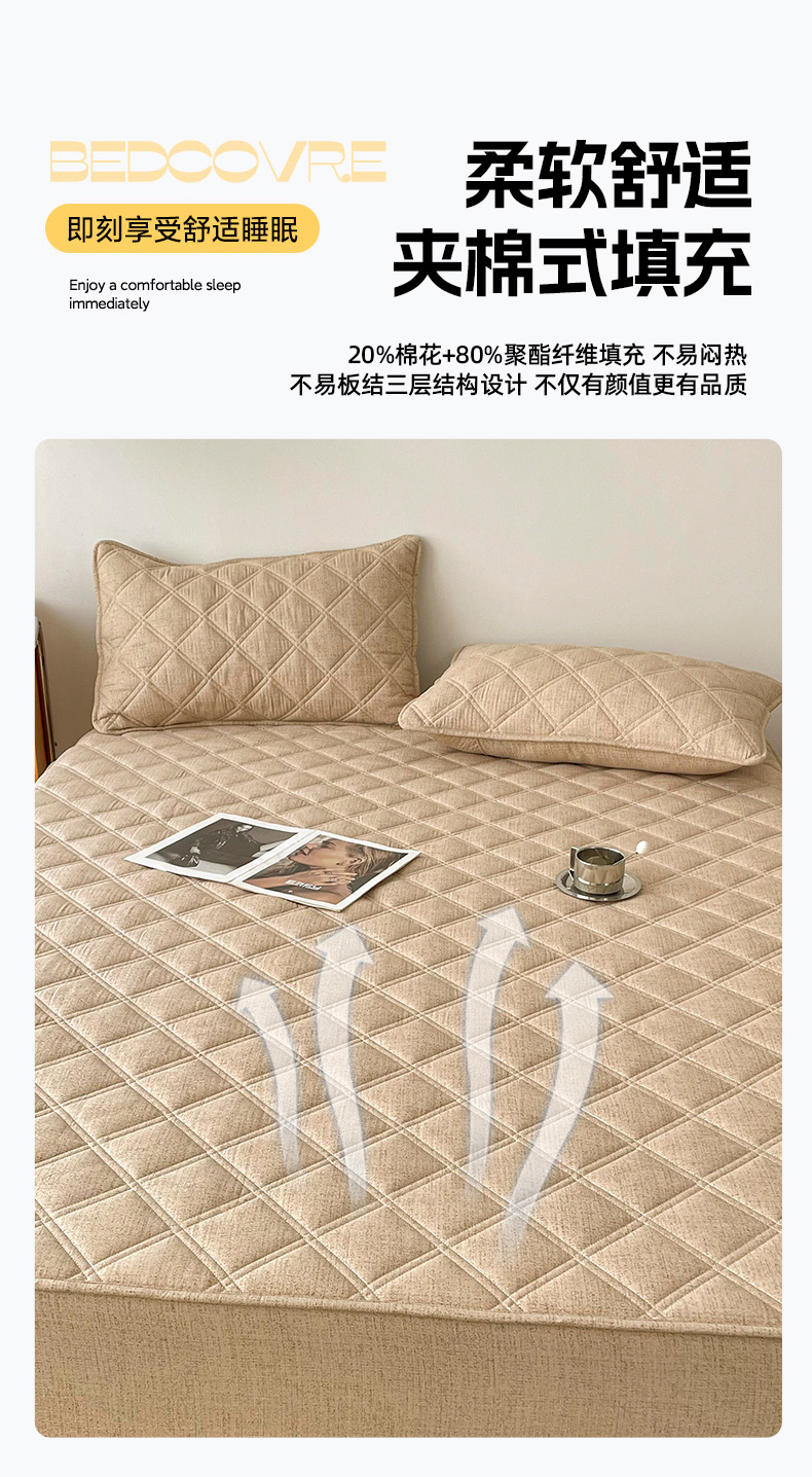 • 91家纺网 家纺一手货源 找家纺 豪选家纺 2025新款仿亚麻夹棉棉花床笠 丝雾棕