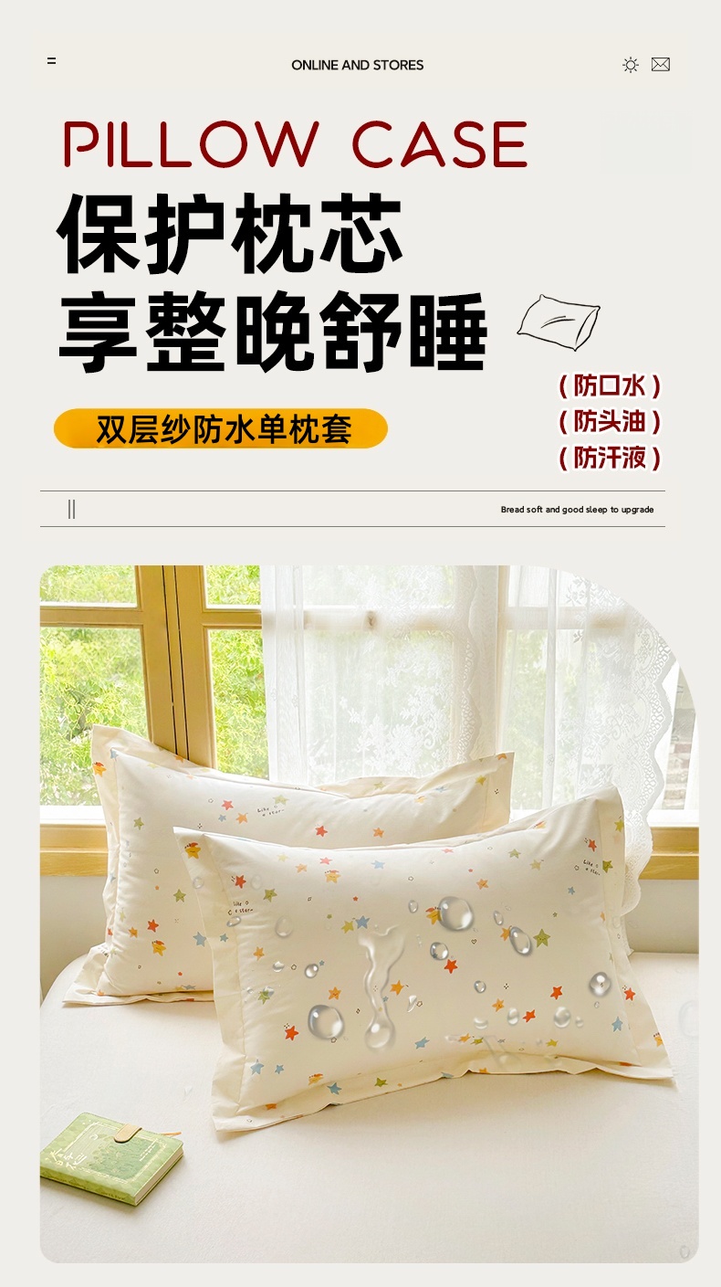 (总)豪选家纺 2025新款双层纱单层印花防水枕套,花间迷小兔,恐龙小世界,萌动可爱熊,七彩蝴蝶结,弯弯月亮兔,星趣小萌友