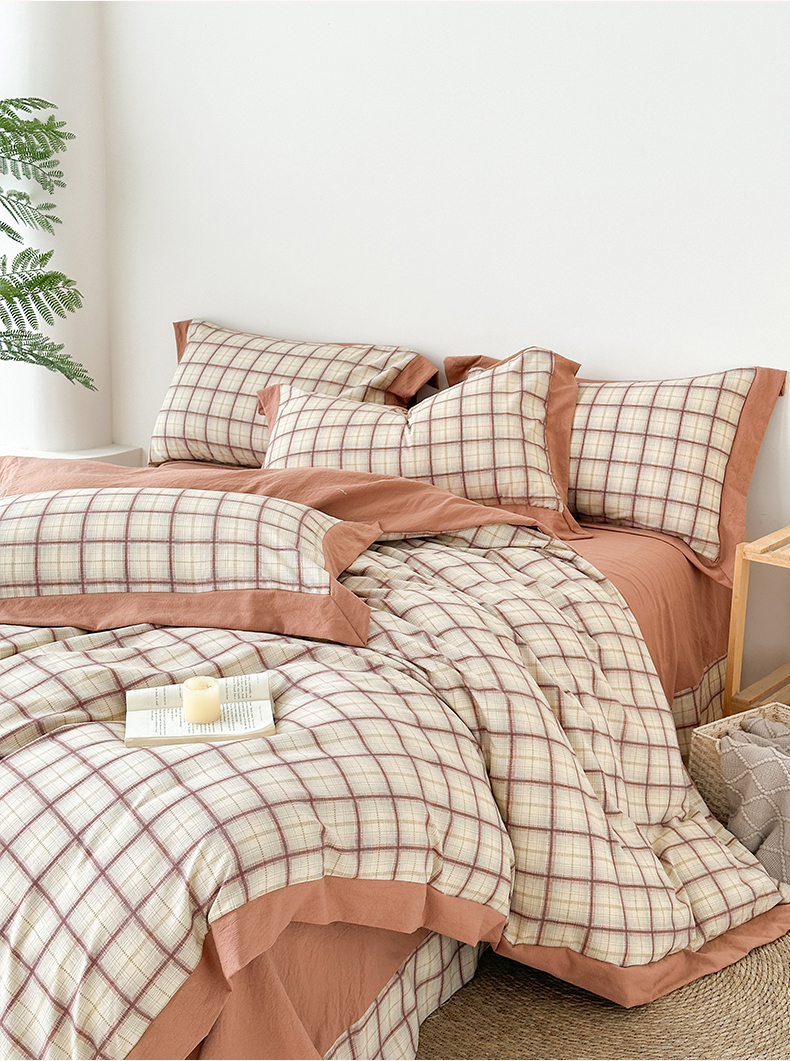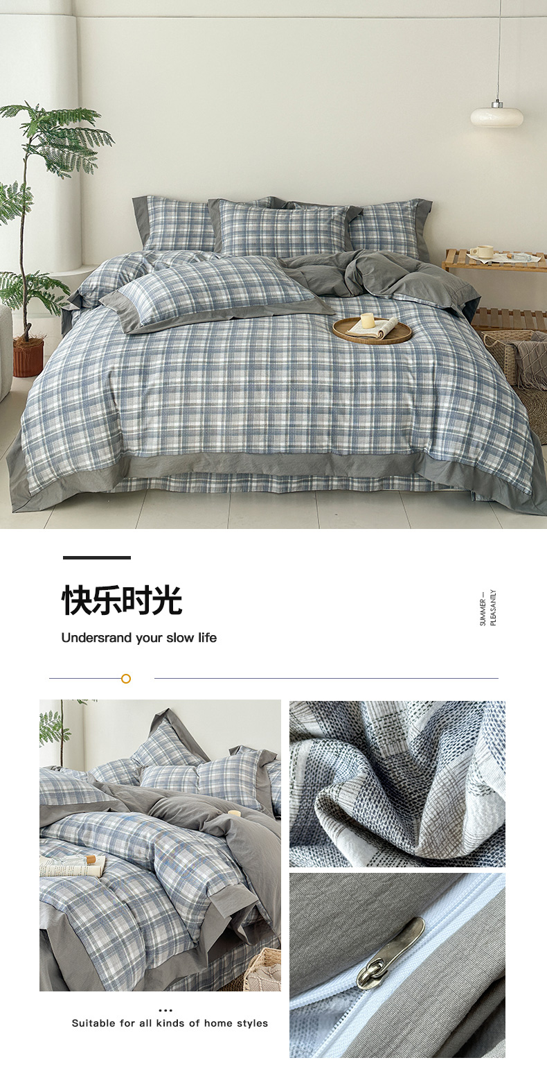 (总)雨田家纺 2025新款A类汉麻双层纱学生宿舍三件套上下铺三件套,初春,格韵-咖,快乐时光,紫韵