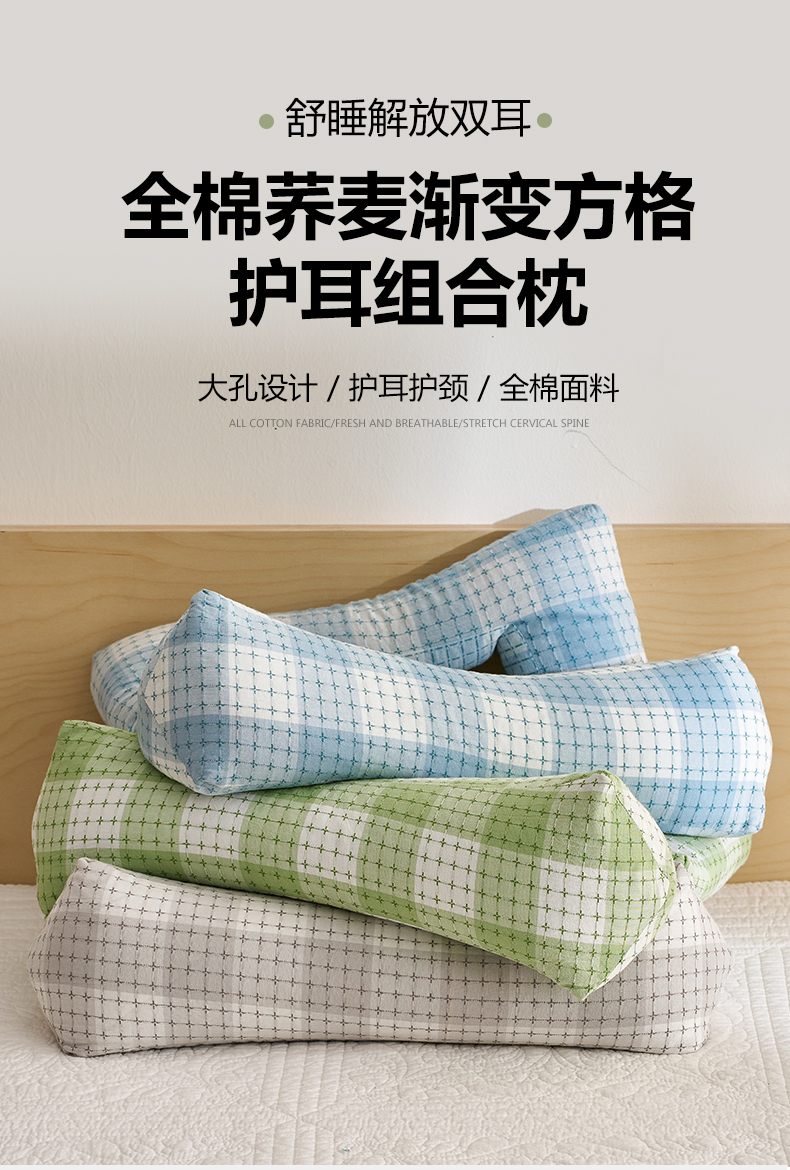 商品名称:乐可 2025新款渐变方格护耳组合枕荞麦枕头枕芯 渐变护耳组合枕蓝