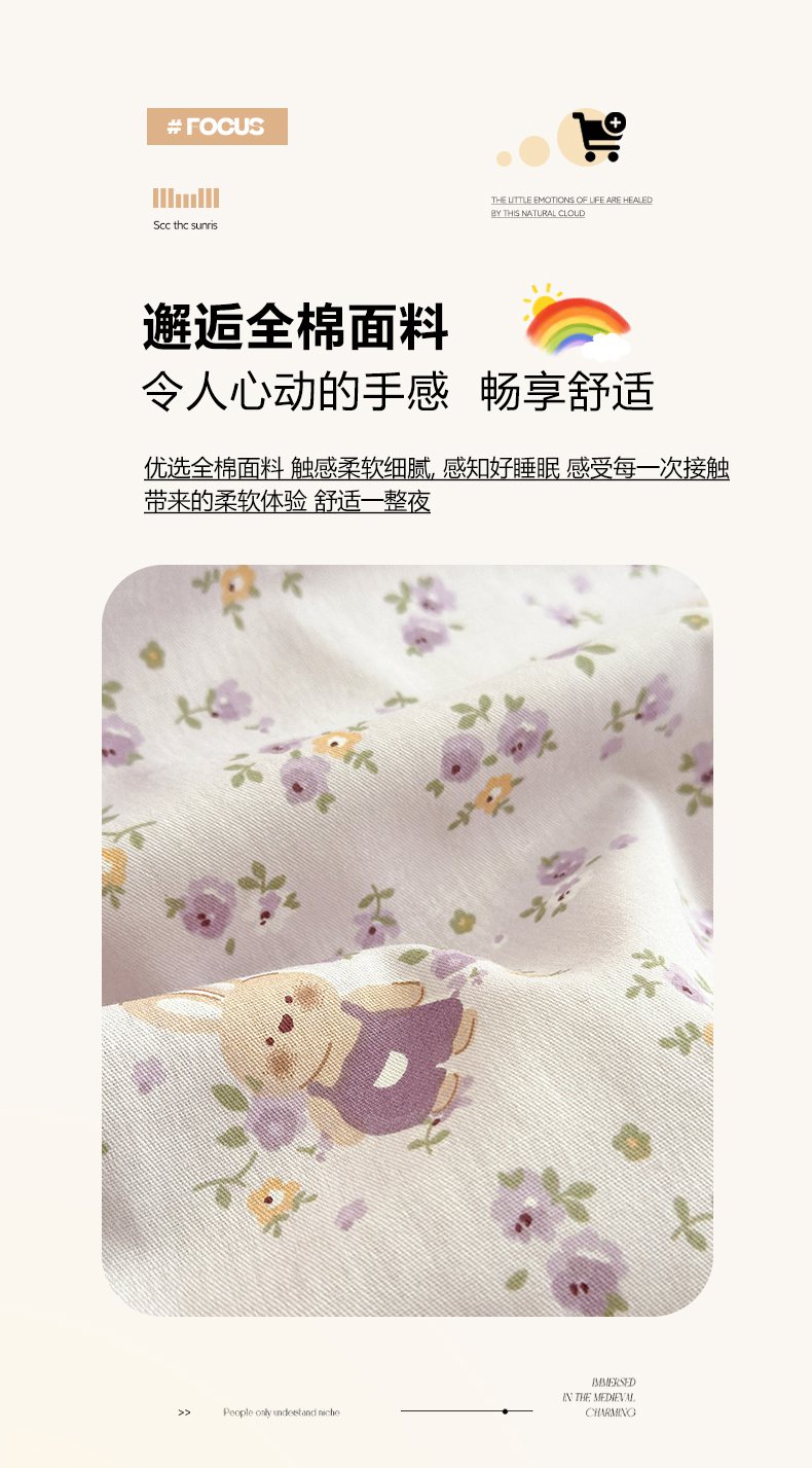 (总)清雅福 2026春夏新款INS小清新40支全棉13372单被套第二批,可爱萌星,可爱喵喵,蓝色小象,觅秋,沫汐,跷跷马,甜蜜花园,星星布偶,星星企鹅,幸福小熊,幸运星,月亮狗