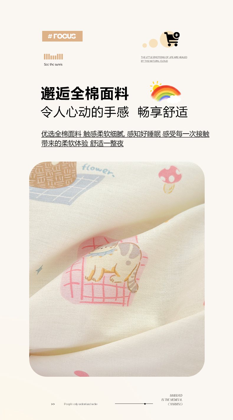 (总)清雅福 2026春夏新款INS小清新40支全棉13372单被套第一批,棒棒糖女孩,春之约定,点点小狗,动物聚会,豆丁小熊,粉心狗,富贵狗,果子象,含羞草,假日小狗