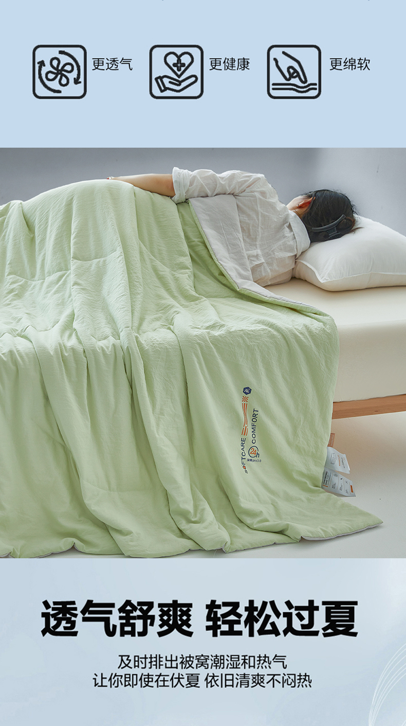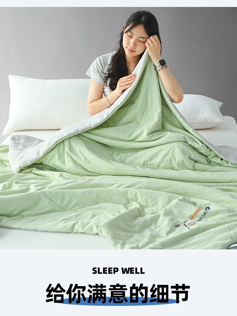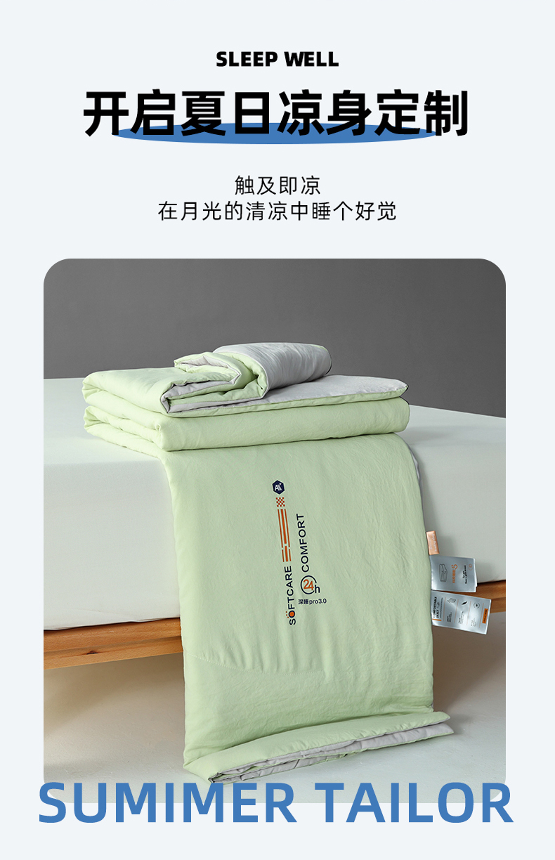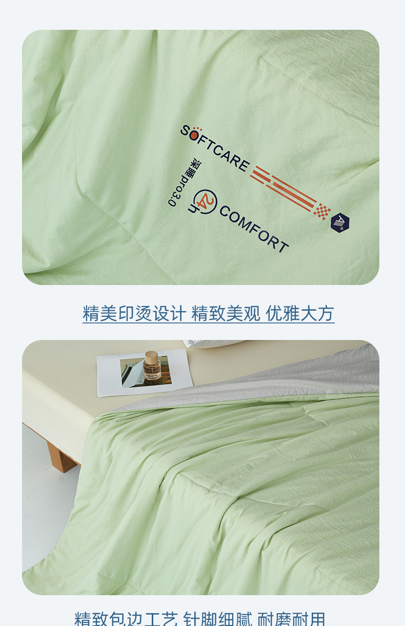 • 91家纺网 家纺一手货源 找家纺 蓝雀翎 2025新款深睡Pro3.0双感夏被系列 深睡Pro云感夏被-果绿