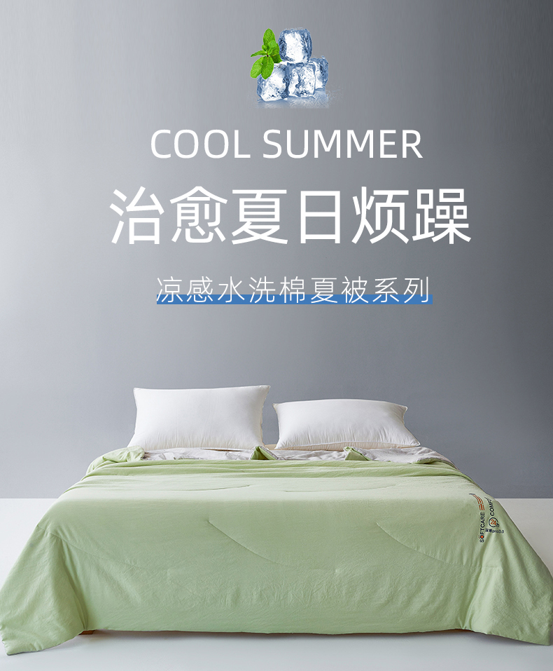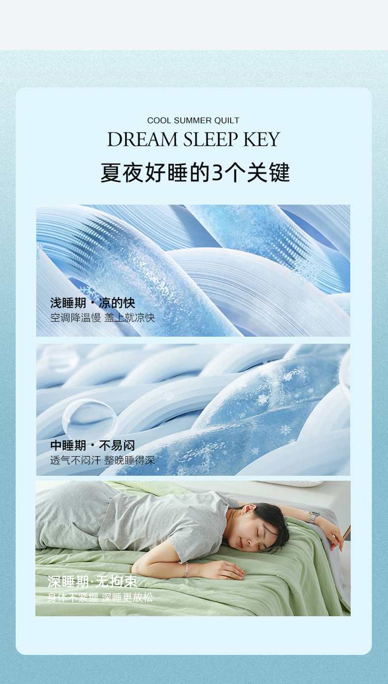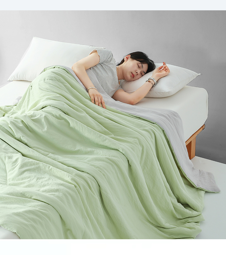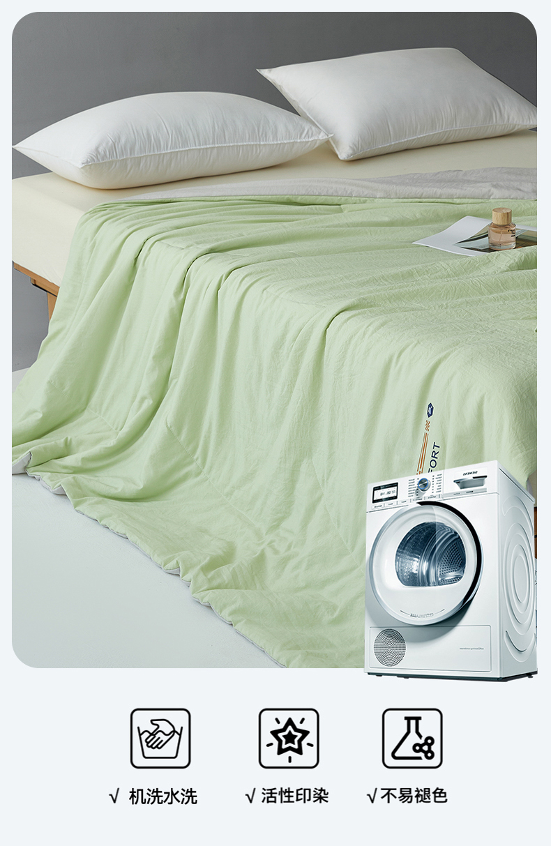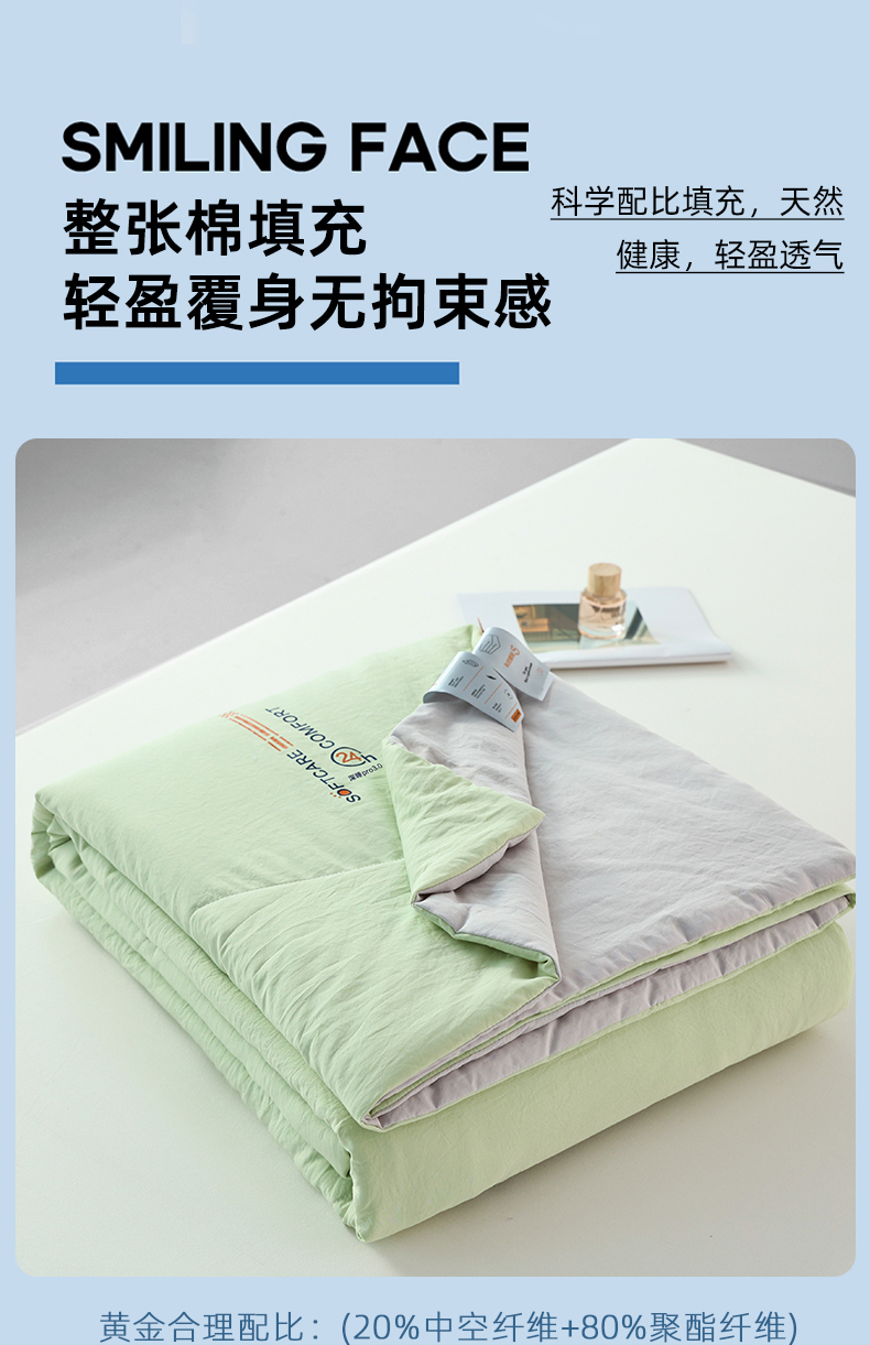 • 91家纺网 家纺一手货源 找家纺 蓝雀翎 2025新款深睡Pro3.0双感夏被系列 深睡Pro云感夏被-果绿