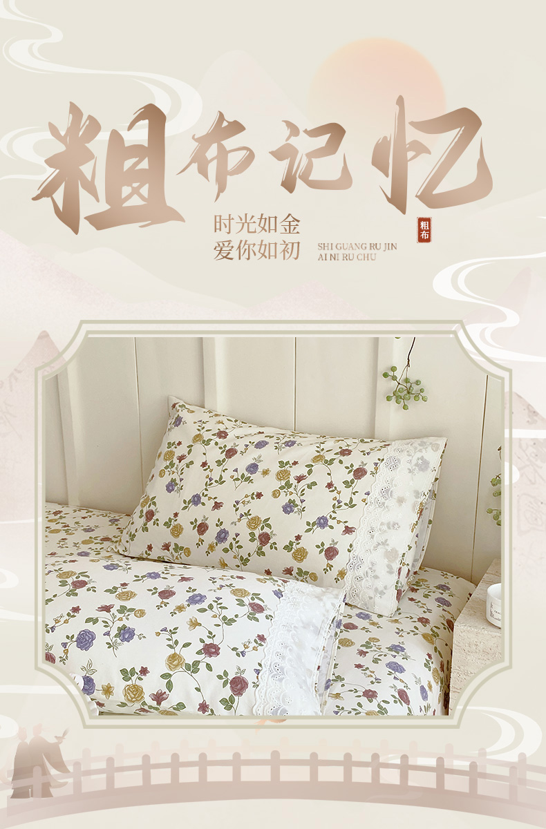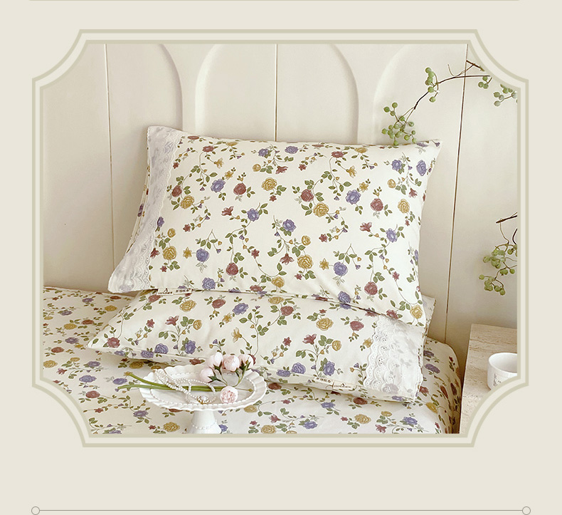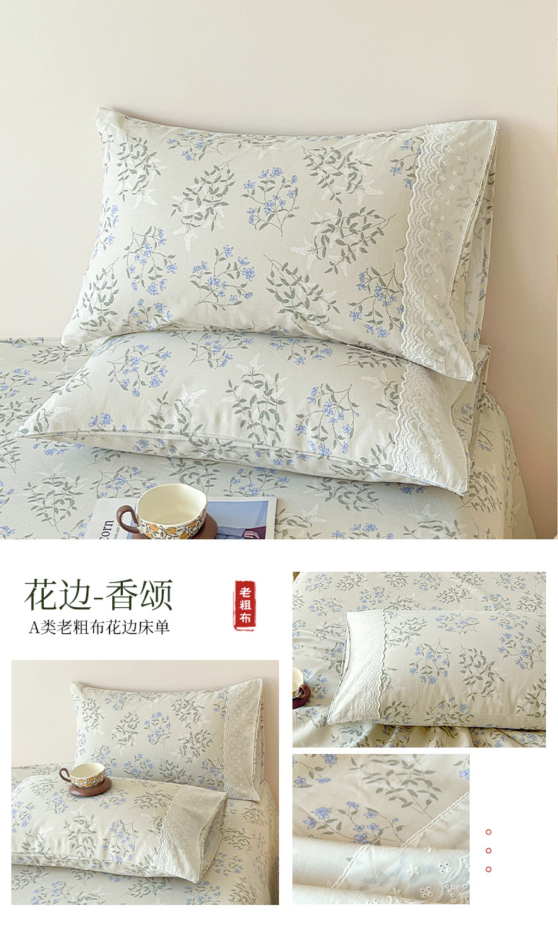 商品名称:春皖家纺 2026春夏新品老粗布花边款单枕套 枕套单件 花边-田园梦