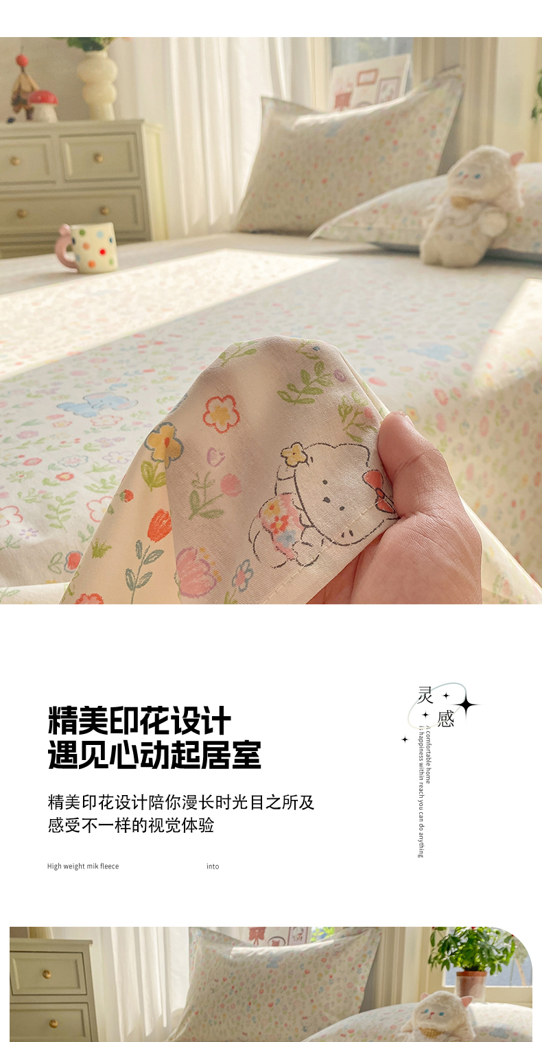 • 91家纺网 家纺一手货源 找家纺 花梦欣 2026新款全棉印花单品系列3简约卡通款-单床单 动物花园