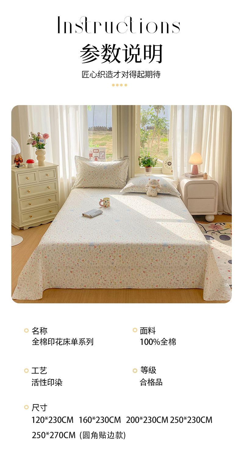 (总)花梦欣 2026新款全棉印花单品系列2花卉款-单床单,安暖如夏,春游手记,动物花园,复古诗笺,荷叶邮差,花丛甜崽,花仙兔兔,京都花园,蓝沫,玫瑰小狗,妙趣乐园,普罗旺斯,俏佳人,青绿银杏,柔色花笺,苏糖粉,苏糖咖,甜蜜纪念日,童话花町,微花耳耳粉,微花耳耳蓝,温柔花朵熊,芜晴花紫,星辰蔷薇,徐徐花开,油画弦音,玉笛花间,栀子花语,自然手记粉,组合,洛克庄园红