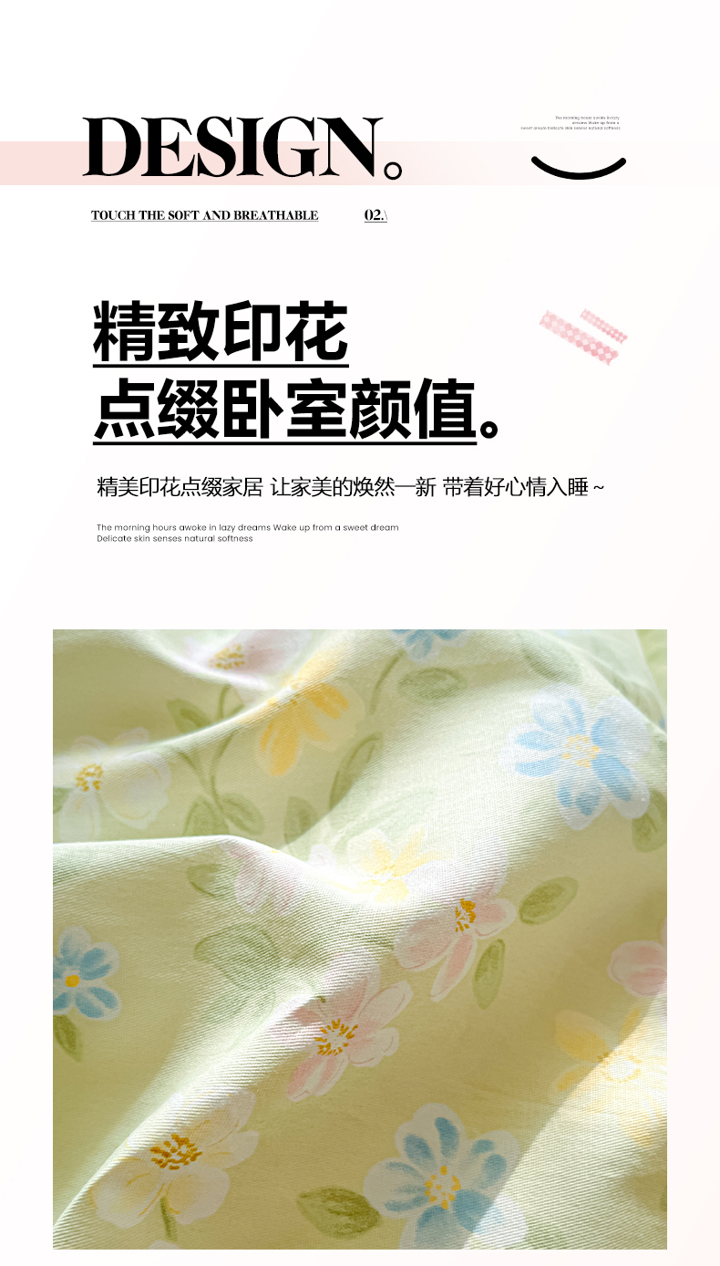 花梦欣 2025新款全棉印花单品系列-四件套悦下花影,悦下花影