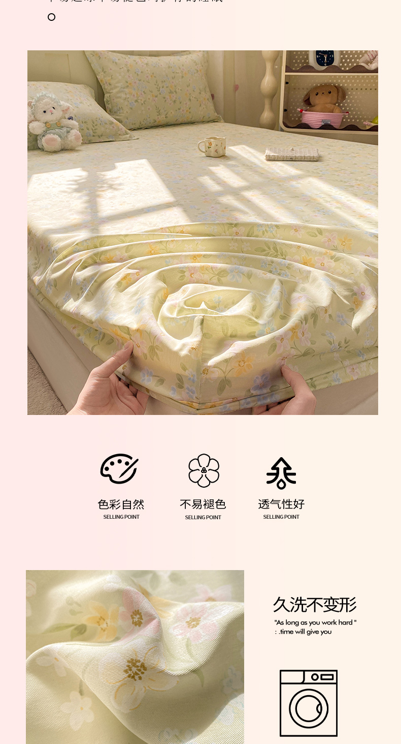 • 91家纺网 家纺一手货源 找家纺 花梦欣 2026新款全棉印花单品系列2花卉款-单床笠 徐徐花开