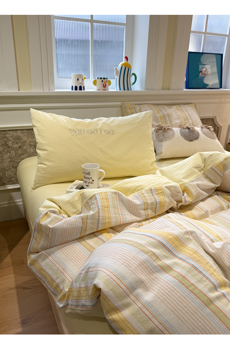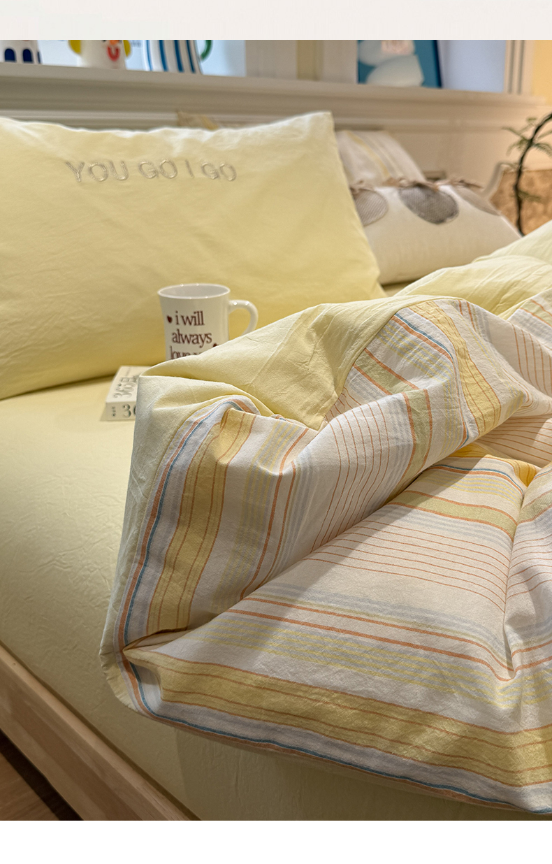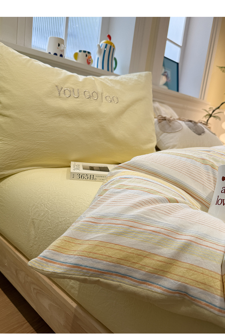 当前位置: 91家纺网 > 商品网购 > 床品套件 > 四件套 > 全棉普通四件套 > 曼町家居 2026春夏新款全棉纯棉色织水洗棉字母刺绣四件套 可夏