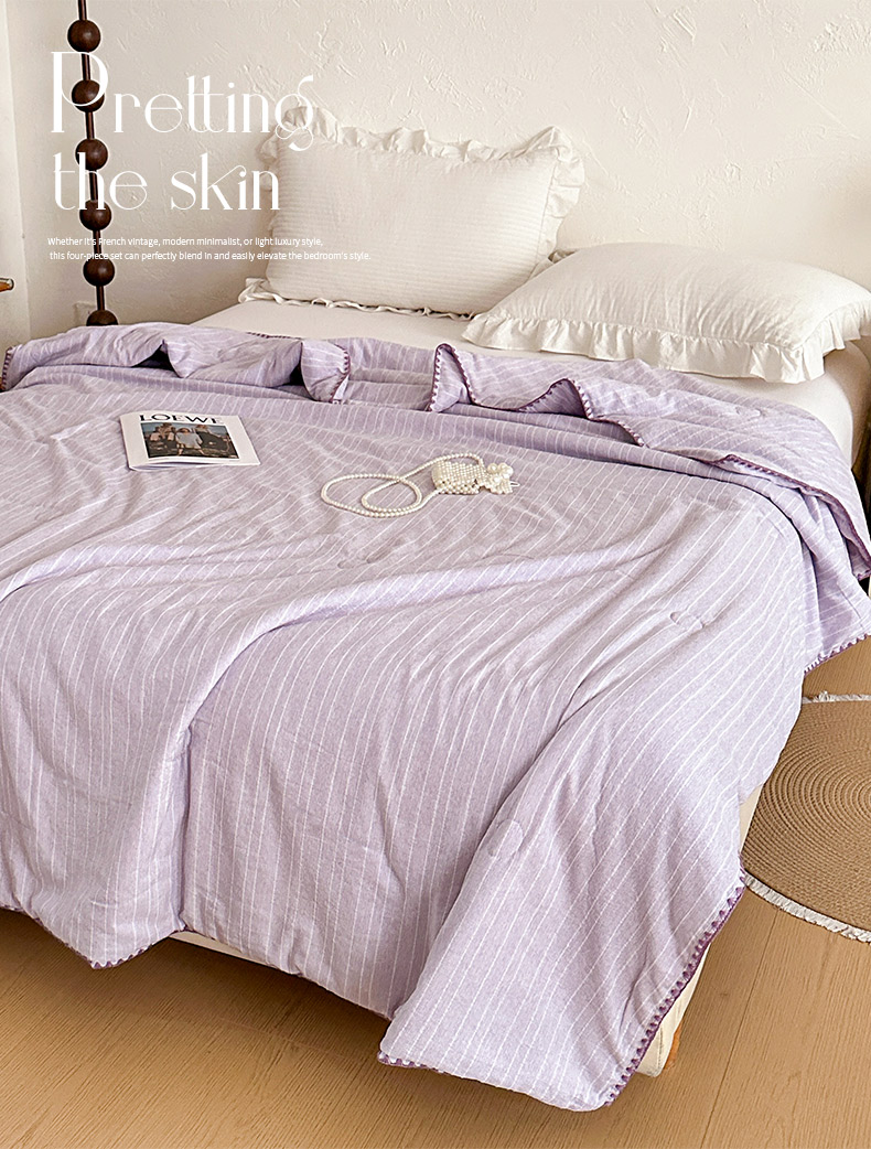 被子 > 夏被 > 鑫利来家纺 2026新款纯色无印风夏被简约素色法式麻夏凉被阳离子色织提花单人双人学生夏凉被 青禾-浅紫