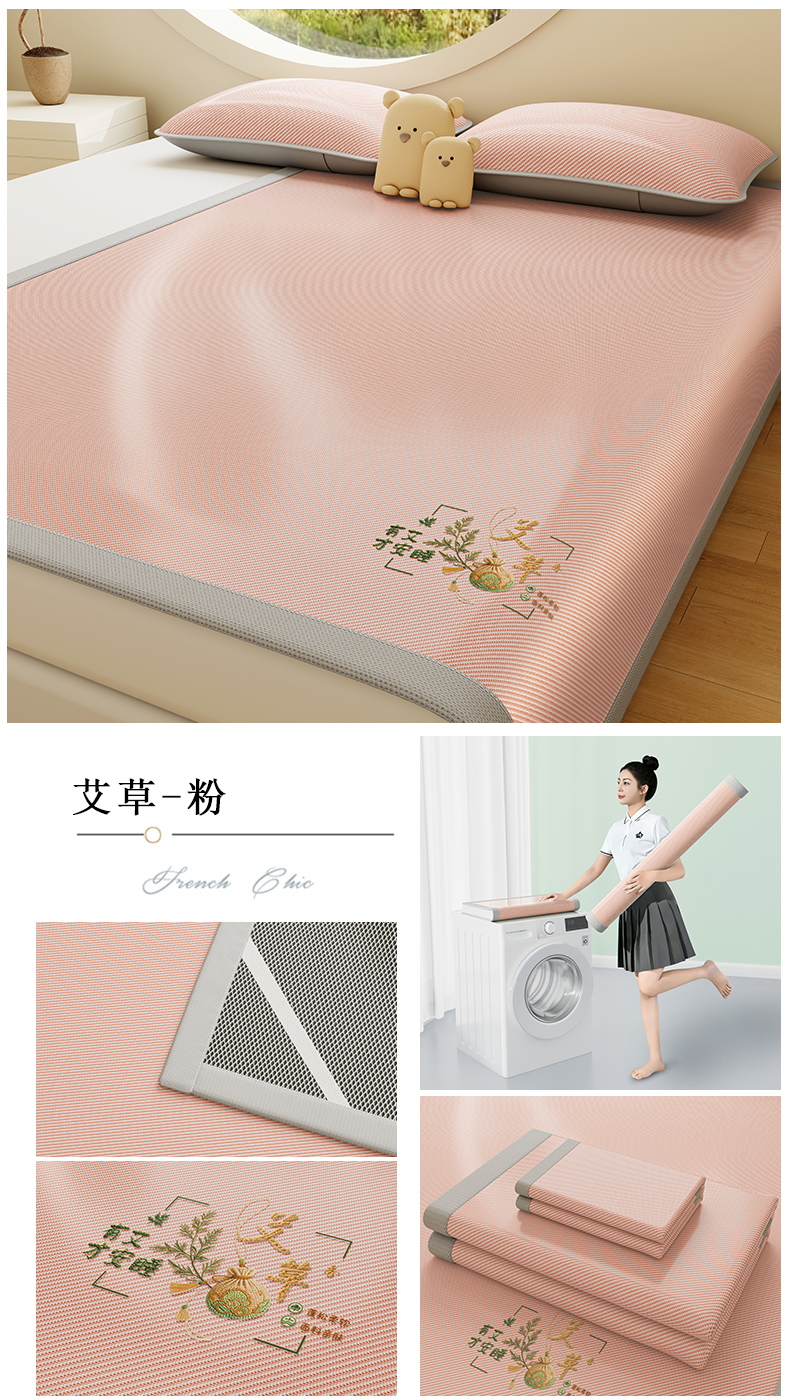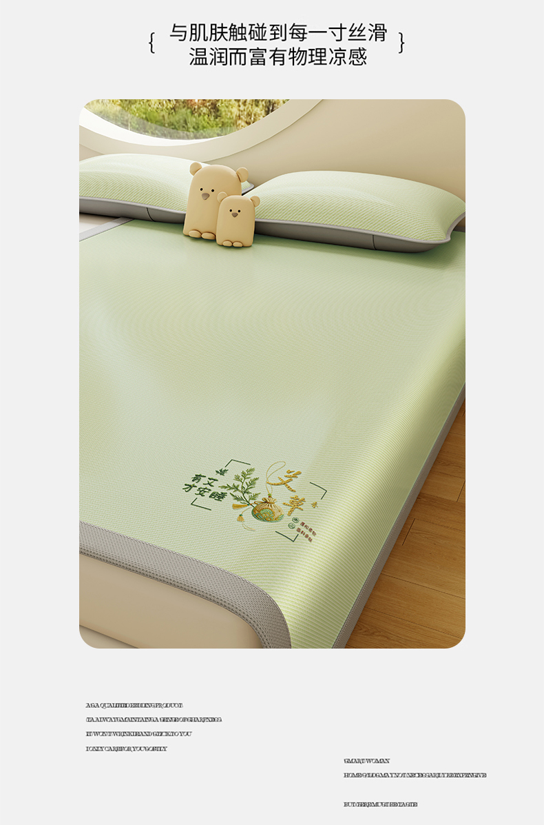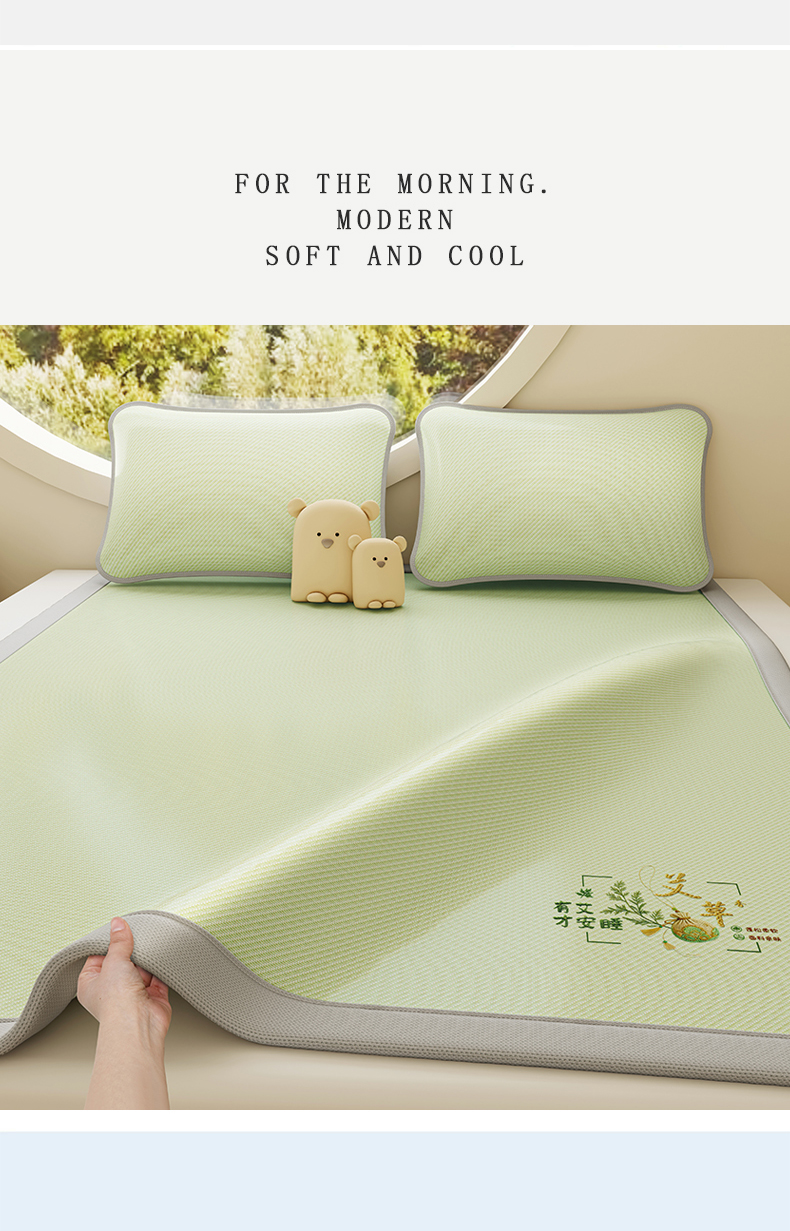 当前位置: 91家纺网 > 商品网购 > 床上用品 > 凉席 > 凉席套件 > 奇丝雅 2026新款夏季A类艾草碳光凉席三明治冰丝凉席家用冰丝席可机洗学生宿舍上下铺空调软席三件套-大床 艾草-绿(三明治网底)