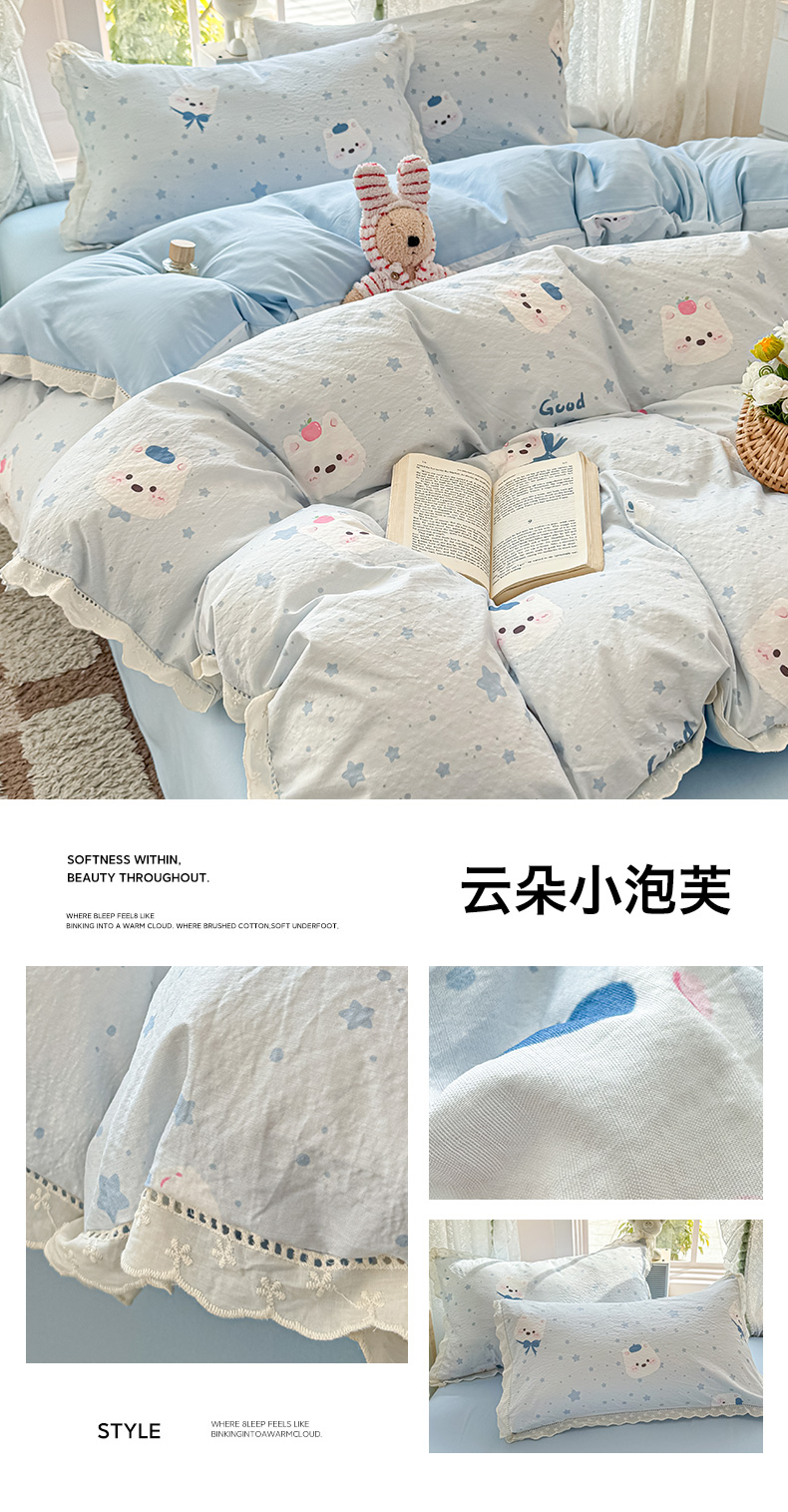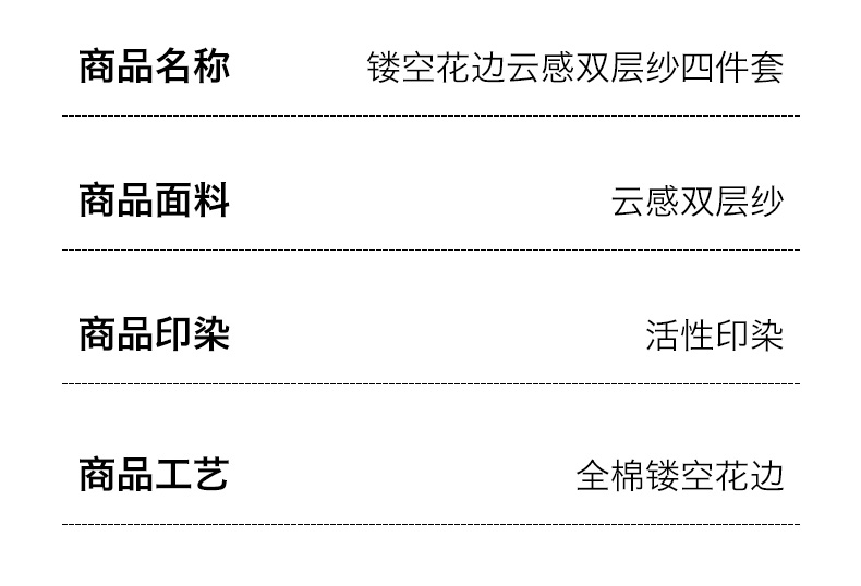 当前位置: 91家纺网 > 商品网购 > 床品套件 > 四件套 > 双层纱四件套 > 寻米 2026新款全棉镂空花边云感双层纱四件套 春日玫瑰