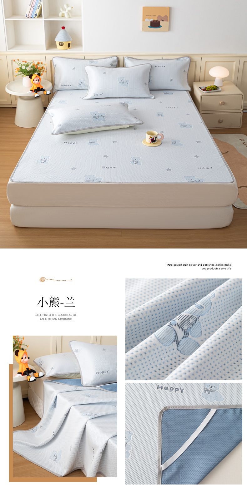 (总)美达家纺 2026新款A类全棉六层纱高温砂洗贝壳边床盖单品床盖床盖单件,巴赫,薄荷小熊,春日宴,棉花糖,云间织梦,追光者
