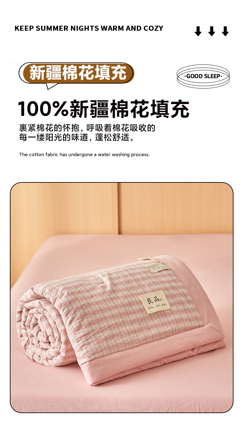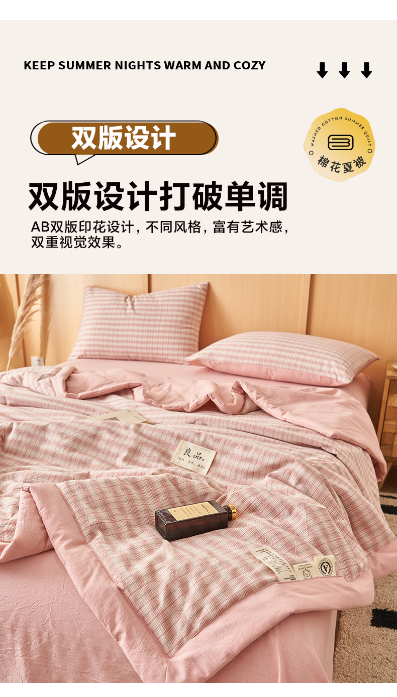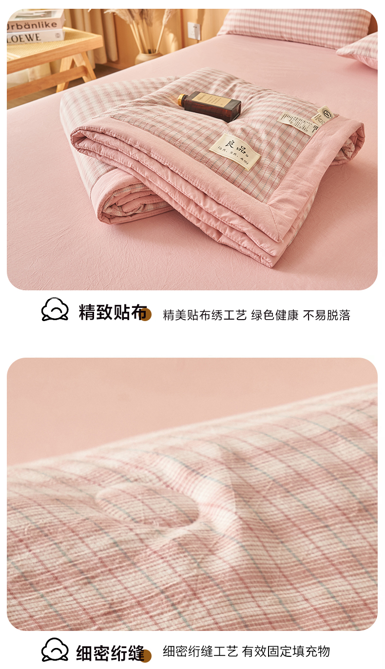 • 91家纺网 家纺一手货源 找家纺 简如 2026新款全棉纯棉色织水洗棉棉花空调被夏凉被 柠檬-粉