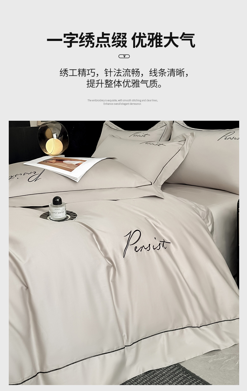 商品名称:(总)新方向 【控价 提供买家秀】2026新款 刺绣50s双股全棉贡缎长绒棉四件套-持之以恒(控价 标准318元 加大338元)