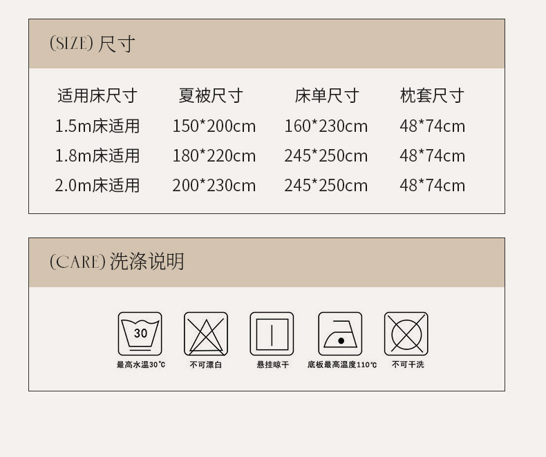 150*200cm夏被1.5床笠四件套 | ¥105.00 |