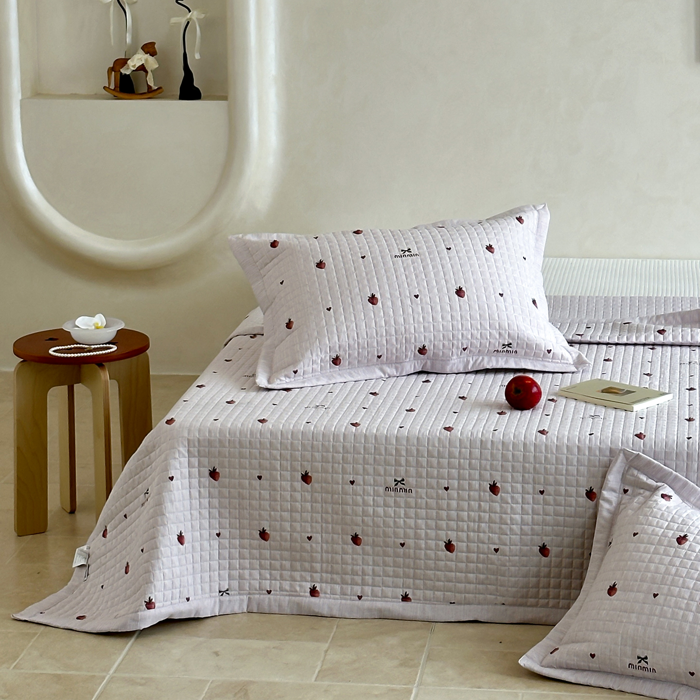 (总)床盖工厂店 2026新款提花色织麻床盖三件套,草莓粉,点点狗 灰,罗逸维,敏敏,素锦 粉,香奈儿,薰衣草 紫,云溪紫