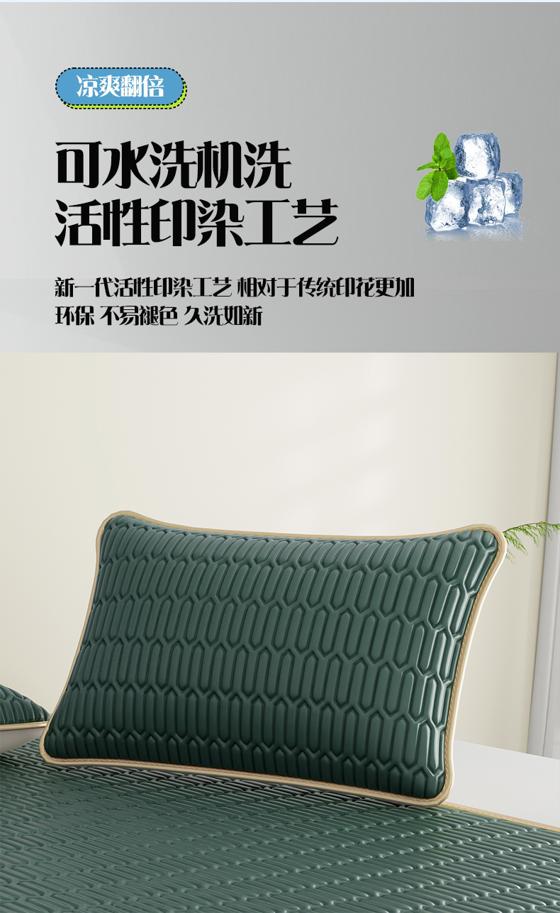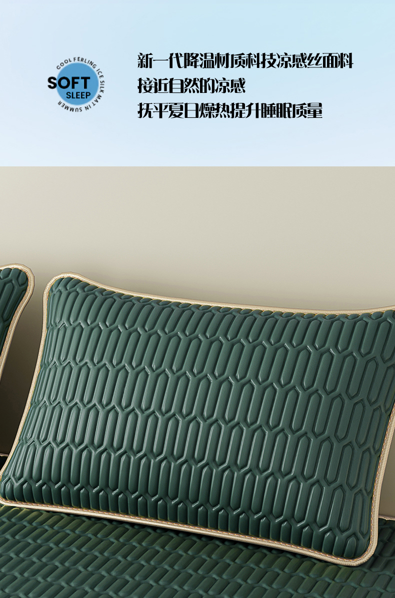 商品名称:家品罗兰 2026新款夏季A类纯色乳胶冰丝凉席枕套凉感家用可机洗单人学生宿舍48×74cm一只一对 乳胶冰丝枕套-墨绿