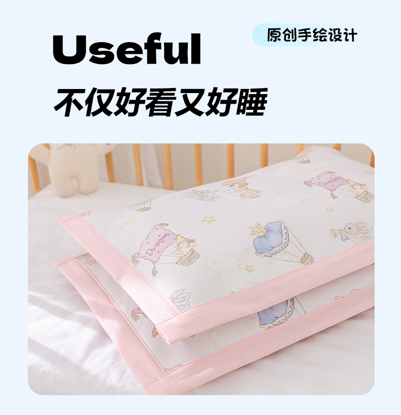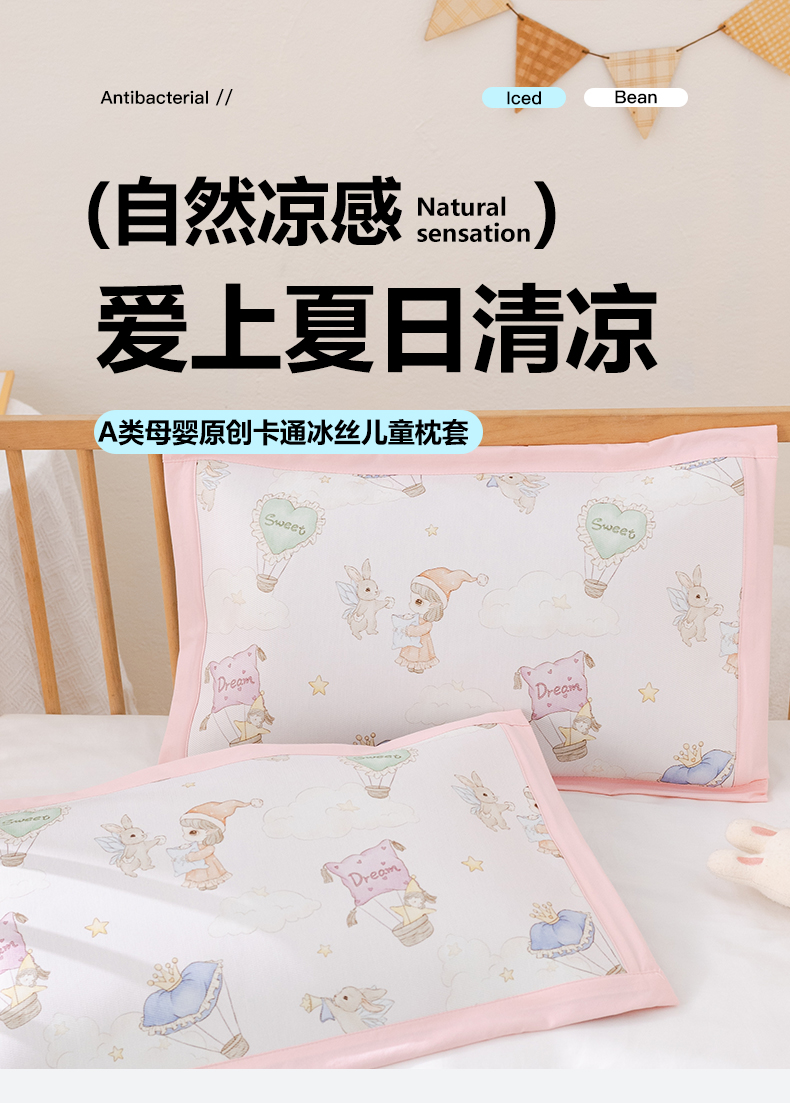 商品名称:荷马之梦 2026新款A类母婴原创卡通冰丝儿童枕套 甜屿绮梦