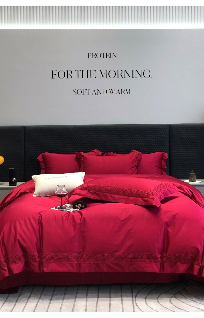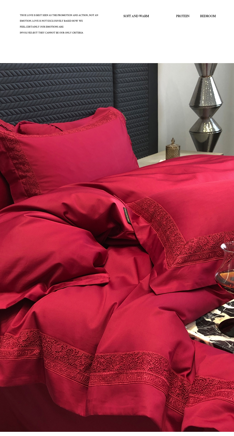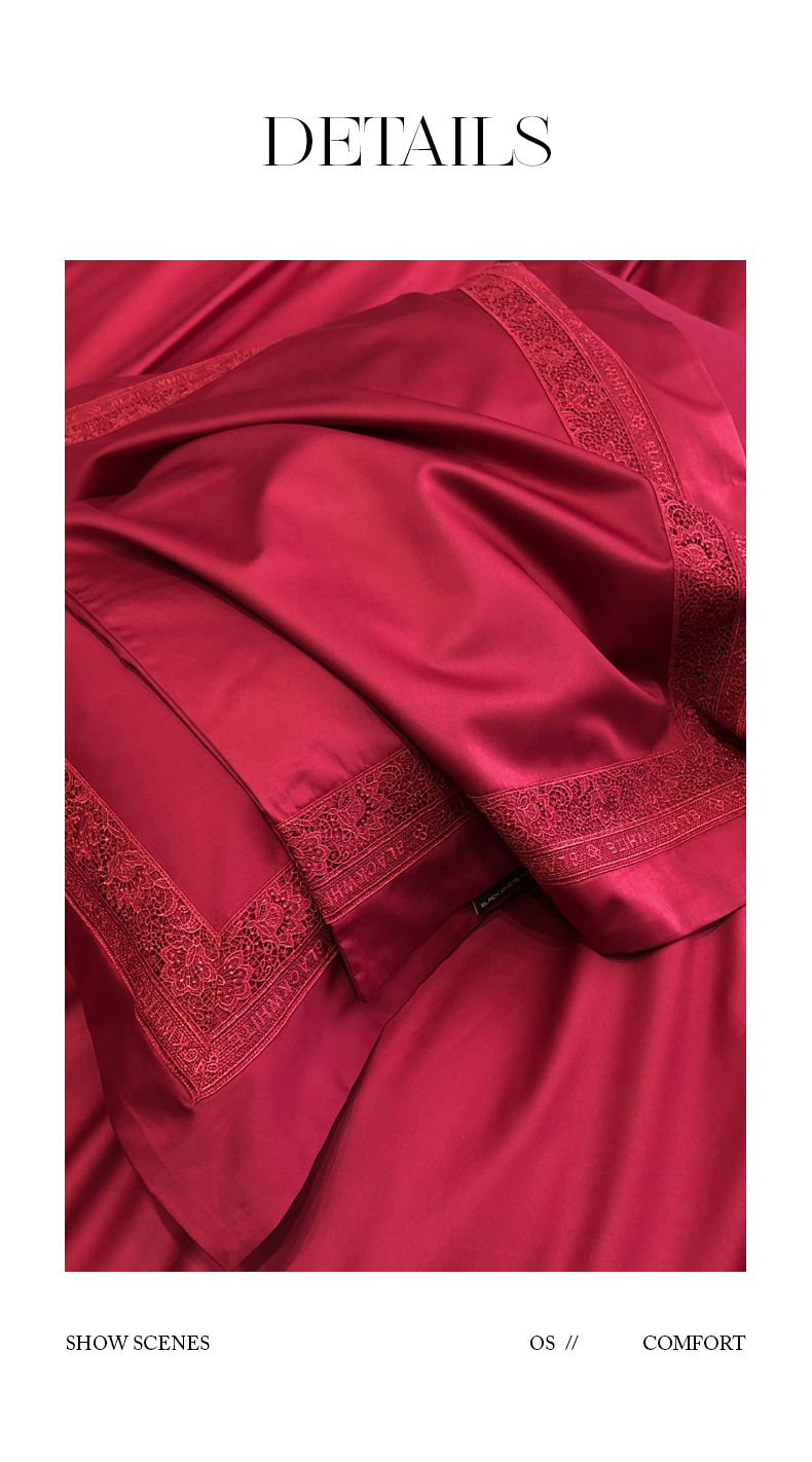商品名称:黑白森林 2026新款匹马棉高定蕾丝大红系列 弗兰纳